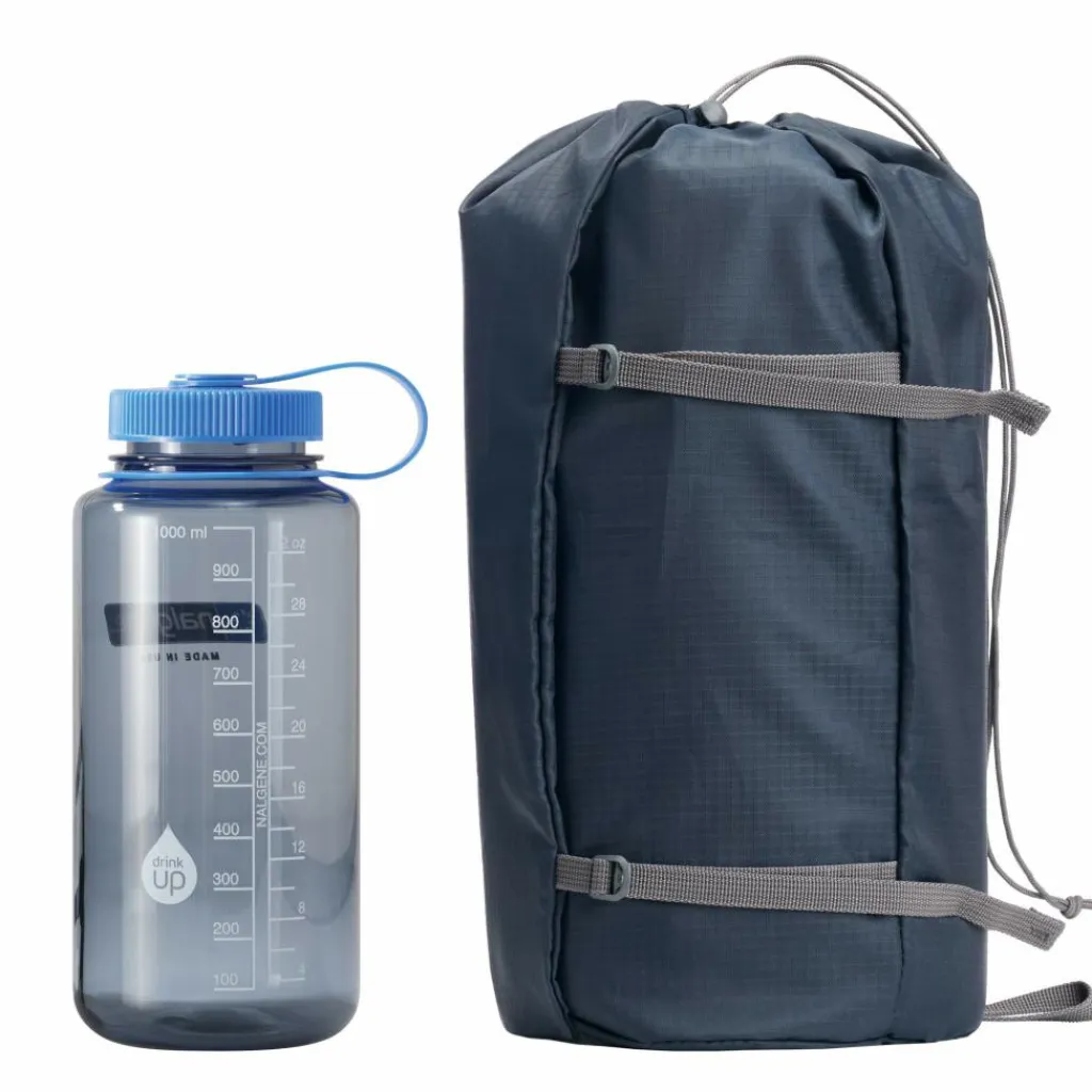 Der Schaumkern bildet im Querschnitt eine durchgängige Mittellage mit aufgesetzten, alternierenden Luft- und Schaumstoffrippen. Ummantelt wird das Ganze von einer strapazierfähigen Unterseite und einem weichen Stretch-Strickgewebe auf der Oberseite. Das sorgt für angenehmen Liegekomfort und reduziert zugleich das Packmaß. Mit 850 g bleibt das Gewicht in einem Bereich, der auch für Wanderungen gut vertretbar ist.