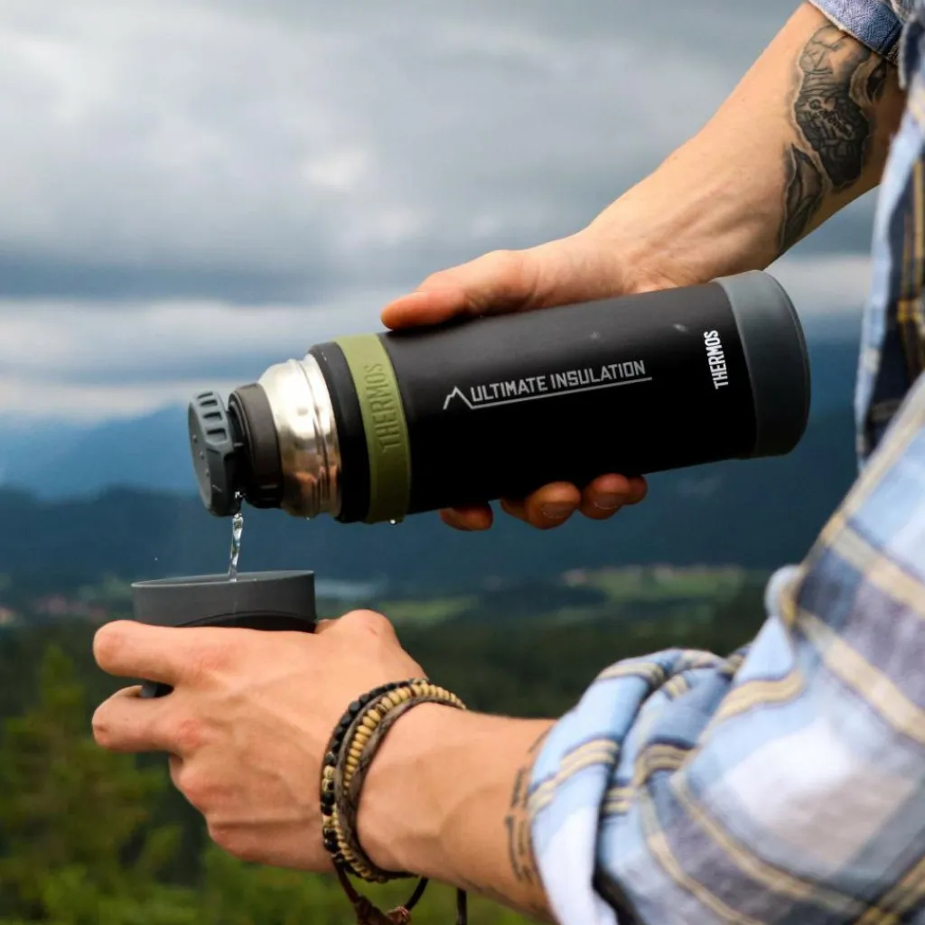Der schlag- und bruchfeste, doppelwandige Edelstahl sorgt dafür, dass raue Bedingungen der Mountain nichts anhaben und deine Getränke über lange Zeit heiß oder kalt bleiben. Je nach Größe zwischen 20 und 24 Stunden. Der Verschluss lässt sich auch mit Handschuhen bedienen. Deine Finger bleiben also warm, wenn du dir in der Pause den heißen Kaffee in den integrierten Becher gießt. Der Boden der auslaufsicheren, isolierten Flasche ist gummiert für griffigen Halt auf verschiedenen Oberflächen. Ist die Tour vorbei, können alle Teile in der Spülmaschine wieder gereinigt werden.