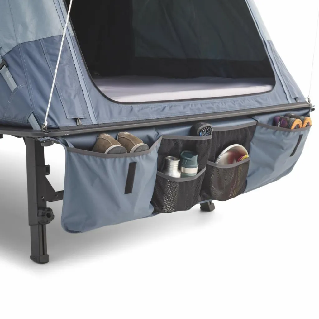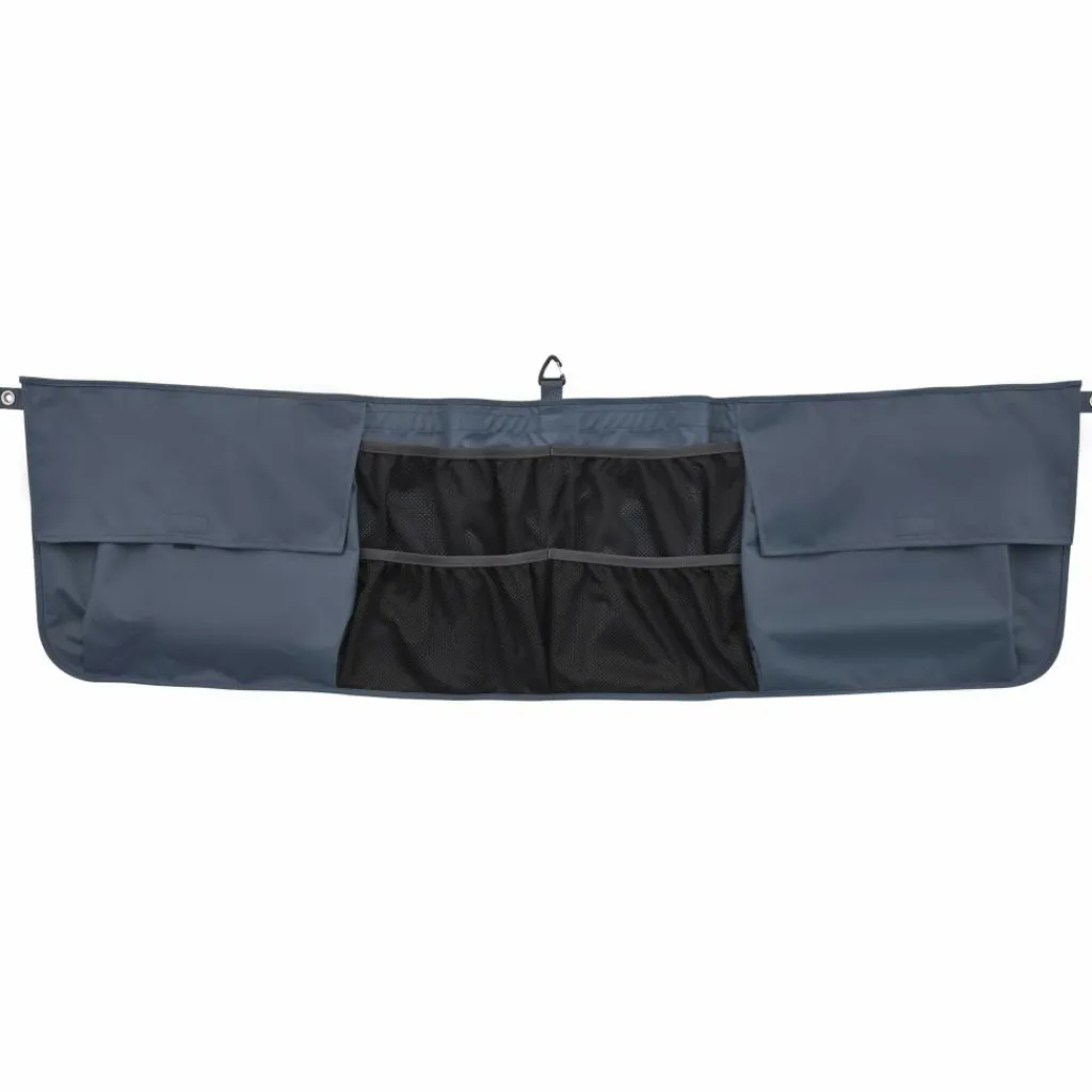 Der große Organizer ist mit dem Thule Outset kompatibel und biete dort unterhalb des Einstiegs vielfältigen und wetterfesten Stauraum für allerlei Campingutensilien.