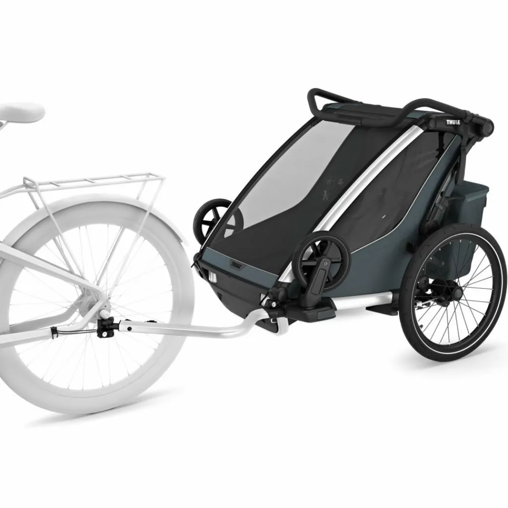 Der Chariot Cross 2 Double als Zweisitzer für aktive Familien bringt einige sinnvolle neue Details mit, die die Bedienfreundlichkeit erhöhen und es dir noch einfacher machen: Die verbesserte Deichsel sowie die beiden verbesserten Vorderräder etwa erlauben einen noch einfacheren Wechsel zwischen Anhänger- und Buggy-Funktion. Ebenfalls prima: Das helle Thule Delight Fahrradrücklicht, das mittig angebracht wird und auch abnehmbar ist. Und natürlich lässt sich der Anhänger weiterhin kompakt zusammenklappen, um ihn etwa im Auto zu transportieren. Ein rundum erstklassiger Anhänger für aktive Familien!