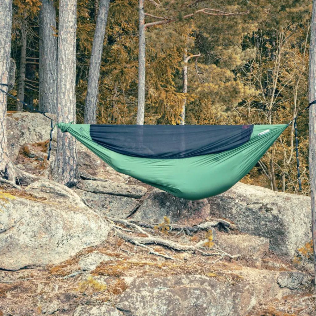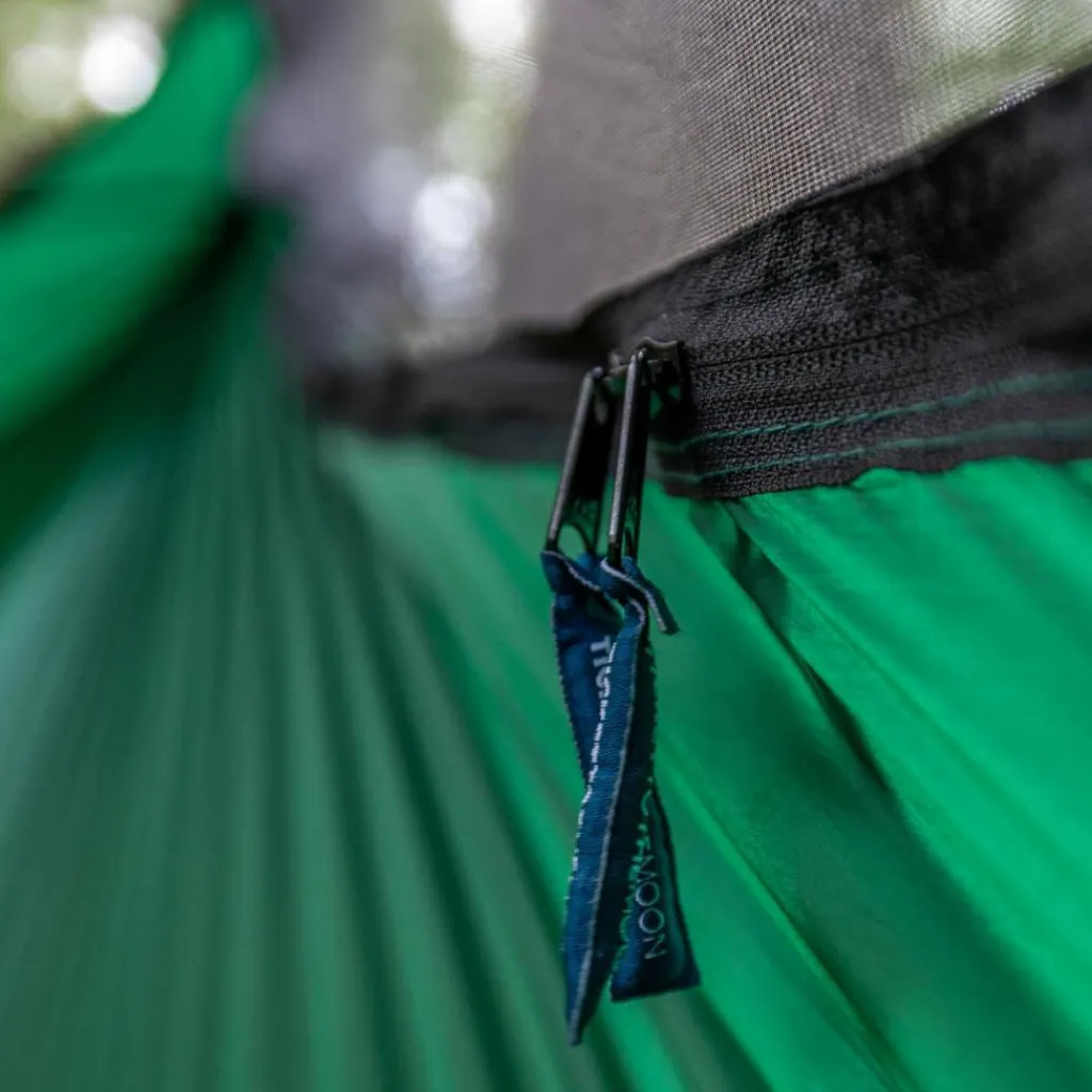 Durch die vier RV-Schieber kannst du von beiden Seite in die Lightest Pro Hammock einsteigen. Das integrierte und verstaubare Mückennetz ist aus hochwertigem Micromesh-Gewebe und bietet dir ausgezeichneten Insektenschutz. Durch das engmaschige Gewebe leitet es auch Wind ab und sorgt so für einen ruhigeren Innenraum. Die Breite erlaubt dir eine bequeme Liegeposition auch für längere Aufenthalte und Übernachtungen.