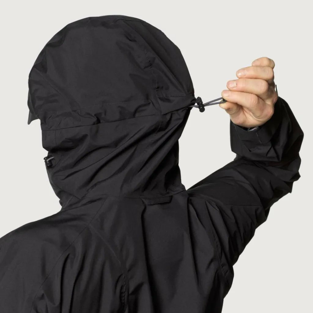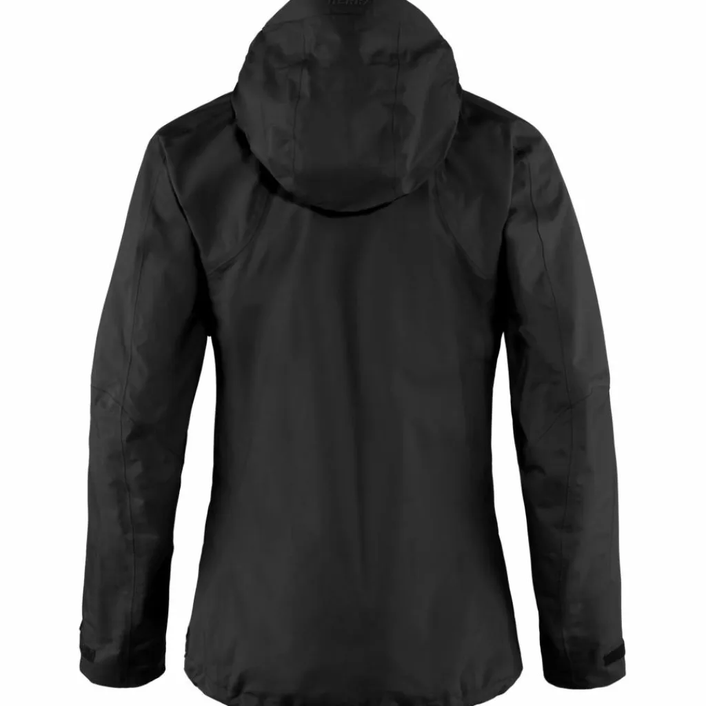 Die Regenjacke besteht aus leichtem Gore-Tex Paclite, das dir zuverlässig Regen und kaltem Wind vom Leib hält. Das Material ist stark atmungsaktiv, sodass du auch auf herausfordernden Wanderwegen ein angenehmes Klima in der Jacke hast. Gerätst du dennoch mal ins Schwitzen, sorgen die seitlichen Belüftungs-Reißverschlüsse dafür, dass Wärme und Feuchtigkeit schnell nach außen gelangen können. Die Reißverschlüsse befinden sich nicht direkt im Achselbereich, sondern sind etwas tiefer an den Seiten angebracht. Dort stören sie weniger, gerade wenn du einen Rucksack trägst.