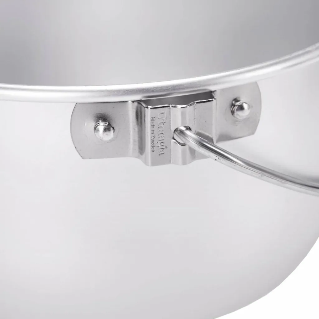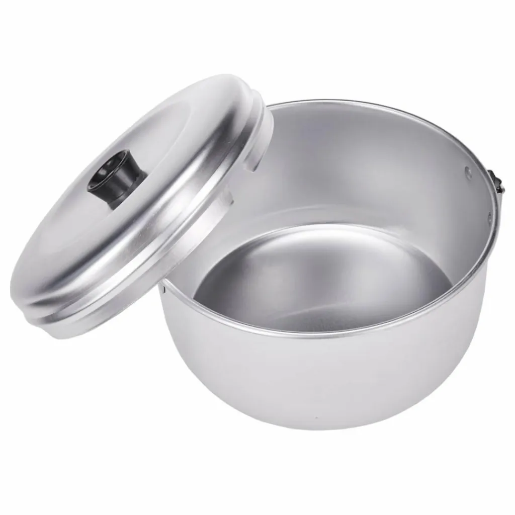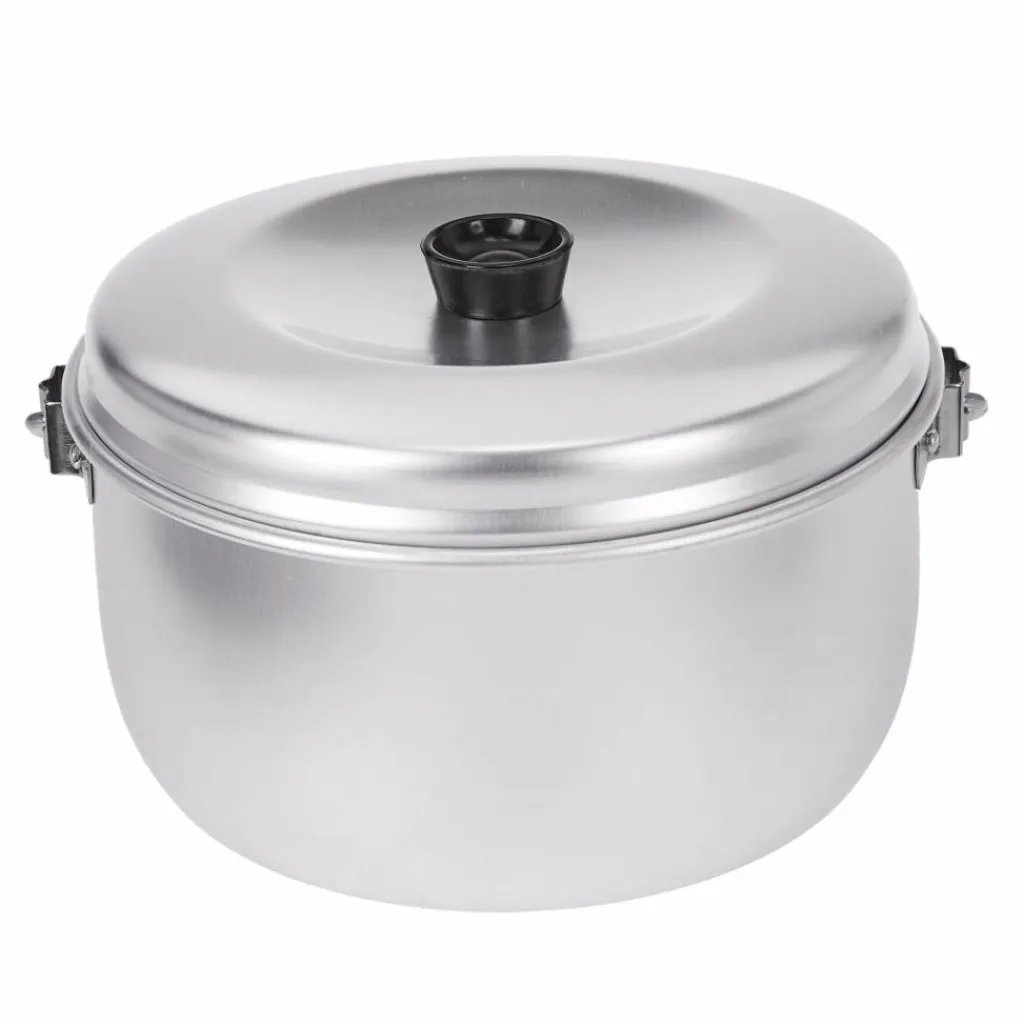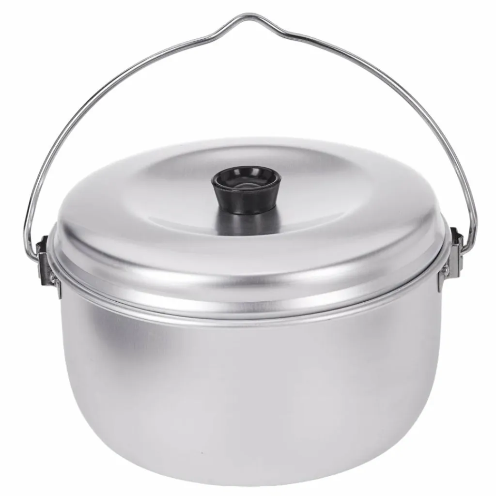 Großer Lagerkessel aus Aluminium, mit klappbarem Henkel und Deckel. Der Topf kann auch mit der Trangia-Griffzange bedient werden und passt auf das kleine Trangia-Sturmkocherset.