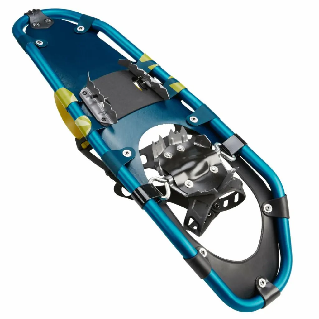 Der umlaufende Rahmen aus leichtem Aluminium ist hinten etwas hochgebogen, wodurch du deinen Fuß beim Schneeschuhwandern besser abrollen und natürlicher gehen kannst und auch wendiger im Gelände rangieren kannst.