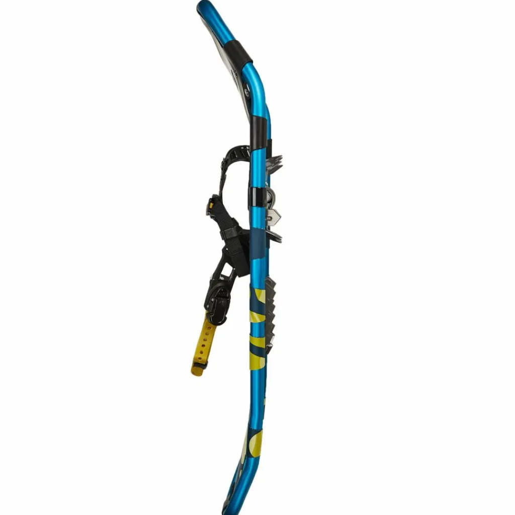 Der umlaufende Rahmen aus leichtem Aluminium ist hinten etwas hochgebogen, wodurch du deinen Fuß beim Schneeschuhwandern besser abrollen und natürlicher gehen kannst und auch wendiger im Gelände rangieren kannst.