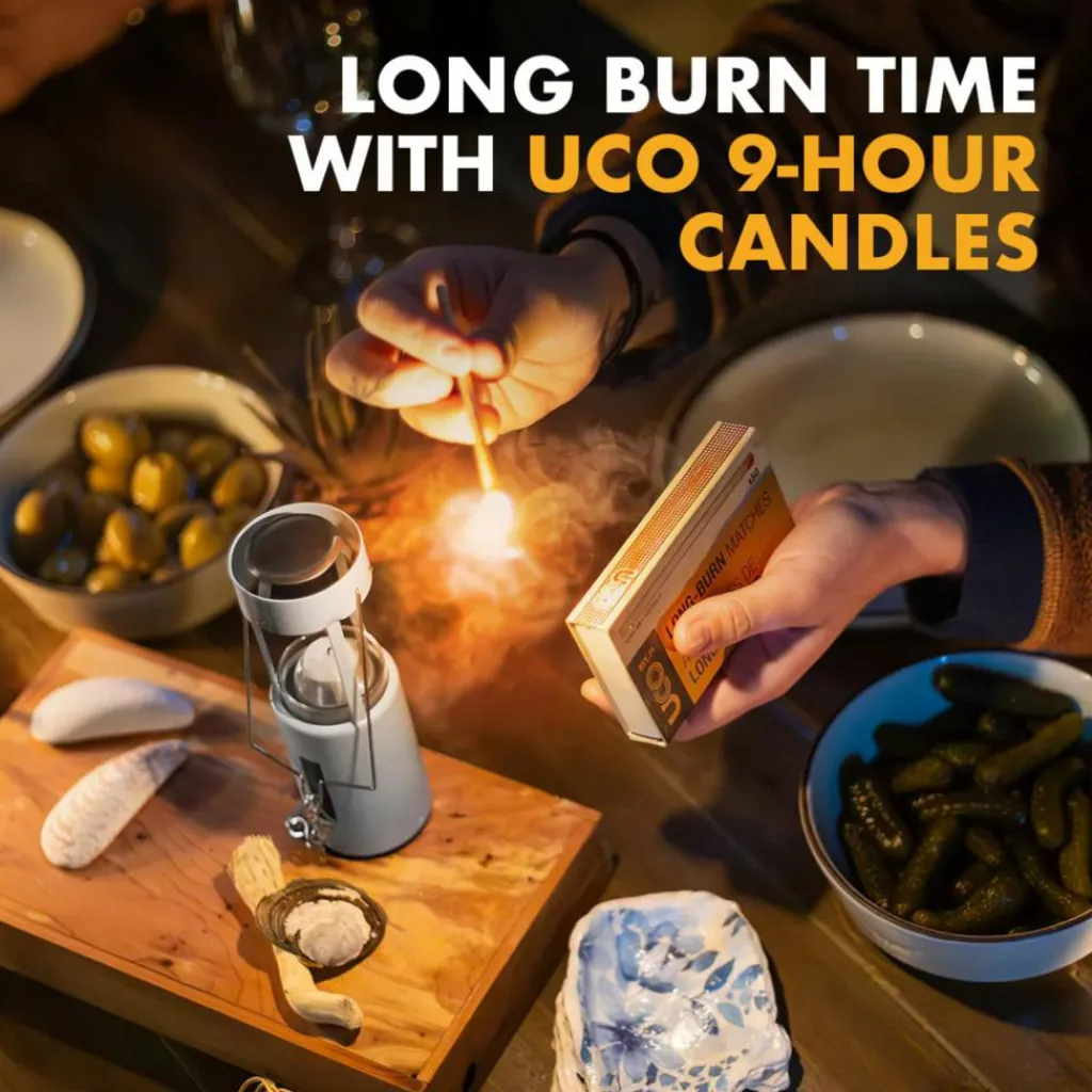 Die UCO-Kerzenlaterne bringt seit Dekaden ein stimmungsvolles Licht in die Camps dieser Welt. Für den Transport kann der Glaszylinder versenkt werden und wird so durch den Aluminiumkörper geschützt.