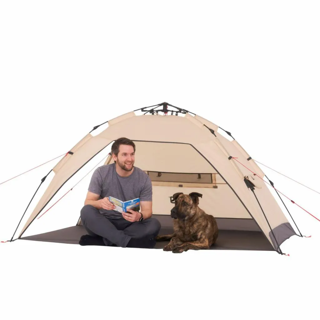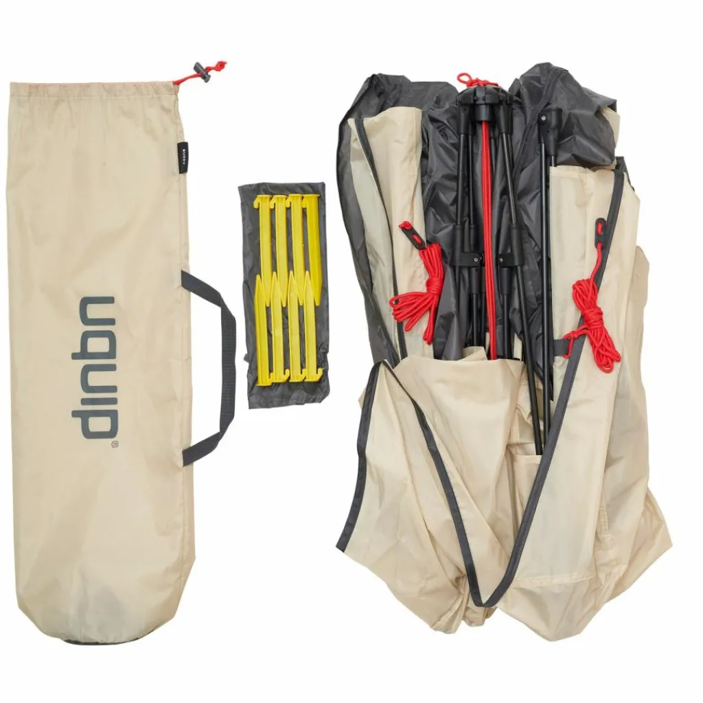 Es ist verständlich, dass niemand Lust hat, sich am Strand mit dem Aufbau des Equipments die Zeit um die Ohren zu schlagen. Viel schöner wird es da mit dem Buzzy, denn nach dem Auspacken steht die Strandmuschel schnell an ihrem Platz. Eine Bodenplane schützt dich und deine Sachen vor (nassem) Sand oder Rasen. Zwei verschließbare Fenster halten wahlweise den Wind ab oder lassen dich einen Blick aufs Wasser werfen.