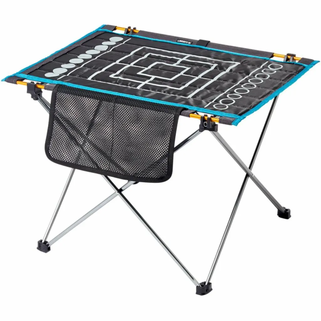 Die Tischplatte besitzt eine Fläche von 55 x 42 cm. So kannst du am Tisch bequem mit deinen Freunden Karten spielen, Essen zubereiten oder kochen. Und sie ist außerdem wendbar: Auf der Rückseite trägt sie einen praktischen Spielbrett-Aufdruck. Damit steht dem Outdoor-Spieleabend nichts im Wege. Eine praktische Netztasche für allerlei Utensilien komplettiert den Liberty M.