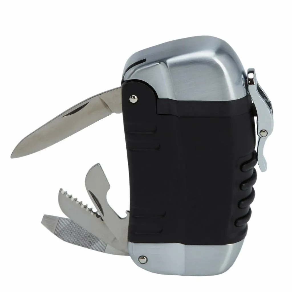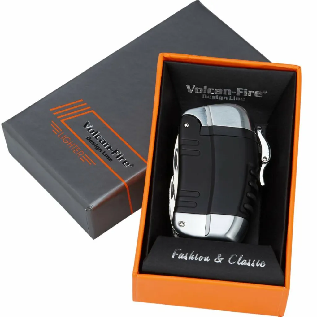 Das DL27 Cooljet verfügt nicht nur über eine Jetflame, sondern besitzt auch hilfreiche Tools im Miniformat. Die Kappe kann mit einem Bügelverschluss gesichert werden.