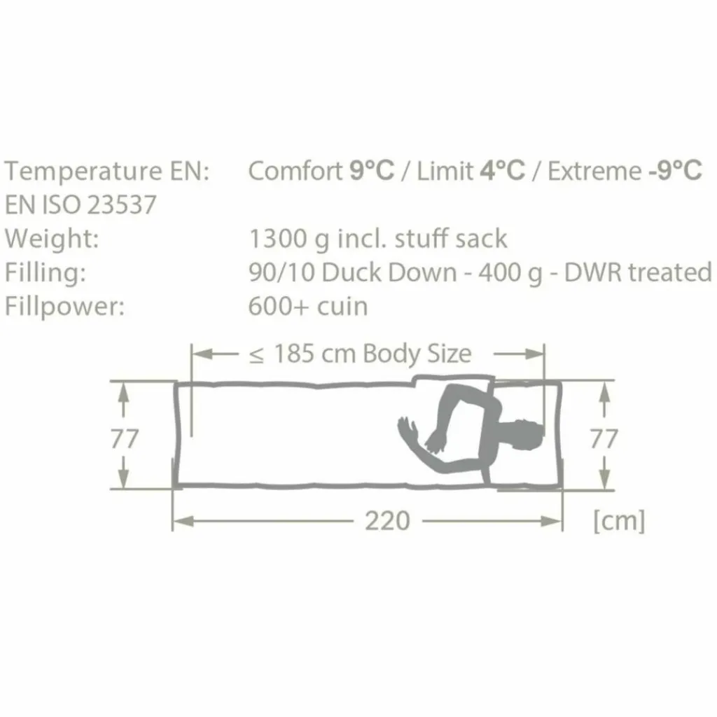 Daunig leichter Schlafkomfort mit vier Ecken – der Alpsee 400 DWN sorgt für mollige Wärme beim Camping und auf Hütten- oder Trekkingtouren. Dabei ist er äußerst flexibel – denn dieser Daunenschlafsack lässt sich je nach Bedarf durch ein Zurückklappen der Vorderseite der Körpergröße anpassen und zudem als Decke oder Schlafsack einsetzen. Komplett aufgeklappt hat dieser Deckenschlafsack die Abmessungen einer Komfortbettdecke und ist daher kompatibel zu handelsüblichen Bettbezügen. Er ist klein verpackbar und eignet sich auch perfekt auf Reisen oder für das Wohnmobil – denn mit den zwei Armöffnungen kann man mit ihm auch lesen, kochen oder essen – ein echtes Multitalent also. Besonders praktisch sind auch die Kopplungsmöglichkeiten: Mit einem zweiten VAUDE Deckenschlafsack verbunden, ergibt sich ein wahres Schlaf- und Kuschelparadies für Paare und Familien – und bietet zudem noch viel Bewegungsgfreiheit. Die Füllung des Alpsee Daunenschlafsack besteht aus hochwertiger, RDS-zertifizierter 600+ cuin Entendaune. Diese ist durch eine umweltfreundliche DWR–Beschichtung von Nikwax unempfindlich gegenüber Feuchtigkeit und sorgt für wohlige Wärme. Das Innen- und Außenmaterial wurde zu 100 % aus Recyclingmaterial hergestellt und leistet so einen echten Umweltbeitrag. In dem bluesign zertifizierten Material schläft es sich auch nur leicht bekleidet wie auf Wolken – es ist sehr hautfreundlich und weich und auch für Allergiker geeignet. Das Vaude Green Shape-Label steht für ein umweltfreundliches, funktionelles Produkt aus nachhaltigen Materialien.
