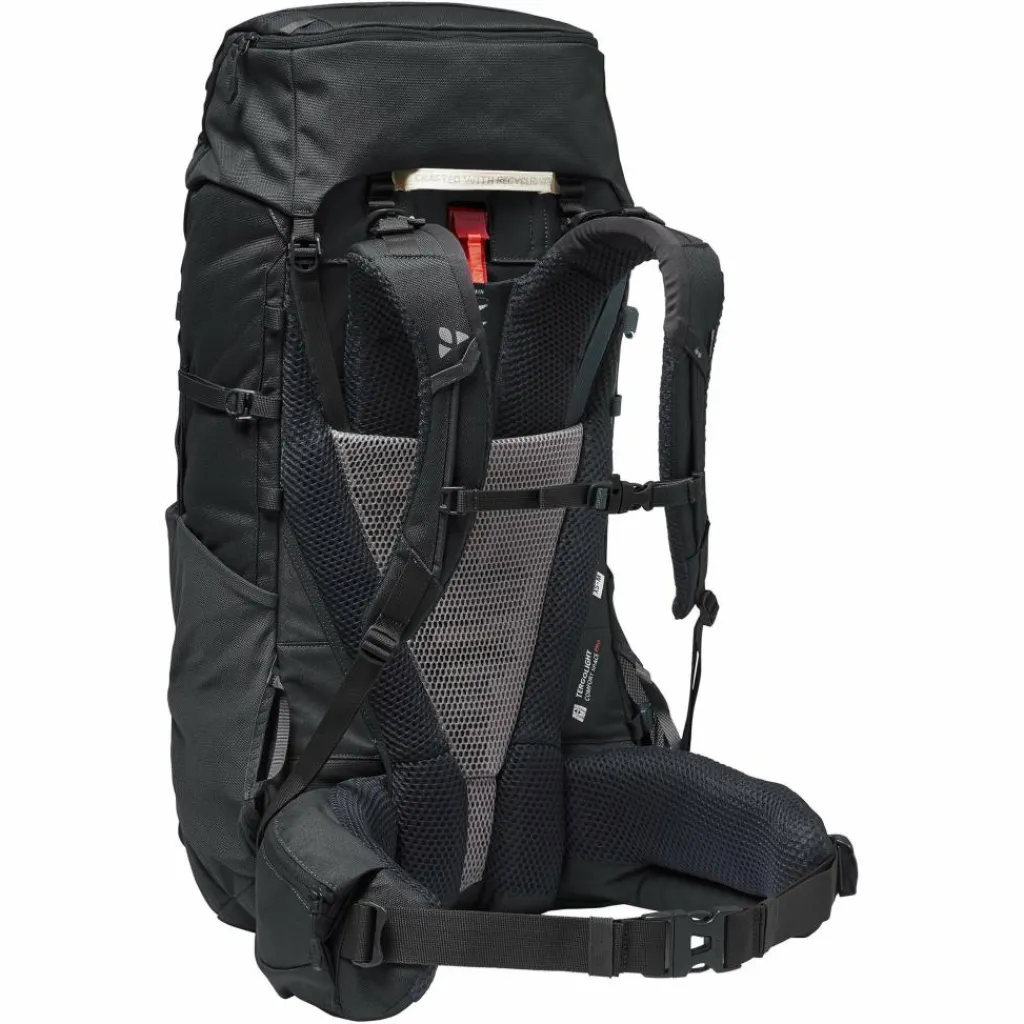 Für idealen Tragekomfort ist der Avox 60+10 mit Vaudes Tergolight Comfort Space Pro Tragesystem ausgestattet. Dieses lässt dich zum einen die Rückenlänge individuell einstellen, sodass der Trekkingrucksack passgenau sitzt und sich auch bei größerem Gewicht bequem trägt. Für noch mehr Komfort befindet sich auf Hüfthöhe eine Aussparung, die das Iliosakralgelenk und dadurch den unteren Rücken entlastet – an langen Tagen mit schwerem Gepäck ein großer Vorteil. Die ergonomisch geformten Schultergurte geben dir die Bewegungsfreiheit, die du in unwegsamerem Gelände brauchst, und der weich gepolsterte Hüftgurt sorgt für eine ideale Lastenübertragung.