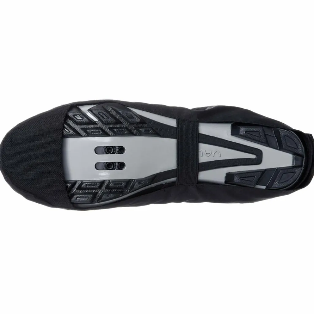 Die Überschuhe sind mit einem durchgehenden Klettverschluss an der Rückseite ausgestattet, wodurch sie bei Bedarf einfach übergezogen werden können. Die Sohle ist, von der Fußspitze abgesehen, offen. Ein Gummi unter dem Mittelfuß hält die Überschuhe in Position. Der Klettverschluss auf dem Spann dient zur Weitenanpassung. Für Schuhe mit SPD-Cleats geeignet.