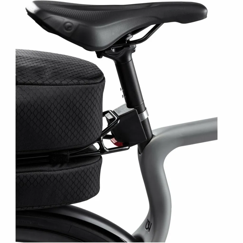 Ein kleiner Adapter an deiner Sattelstütze nimmt den Rahmen der Satteltasche auf. Die Adapter-Technik ermöglicht dir ein rasches und problemloses Anbringen und Abnehmen der Cyclist Saddle Bag. Bitte beachte: Von der Verwendung an Carbon- oder anderen Leichtbau-Sattelstützen rät Vaude ab oder empfiehlt, den Rat des Rad-Herstellers einzuholen.