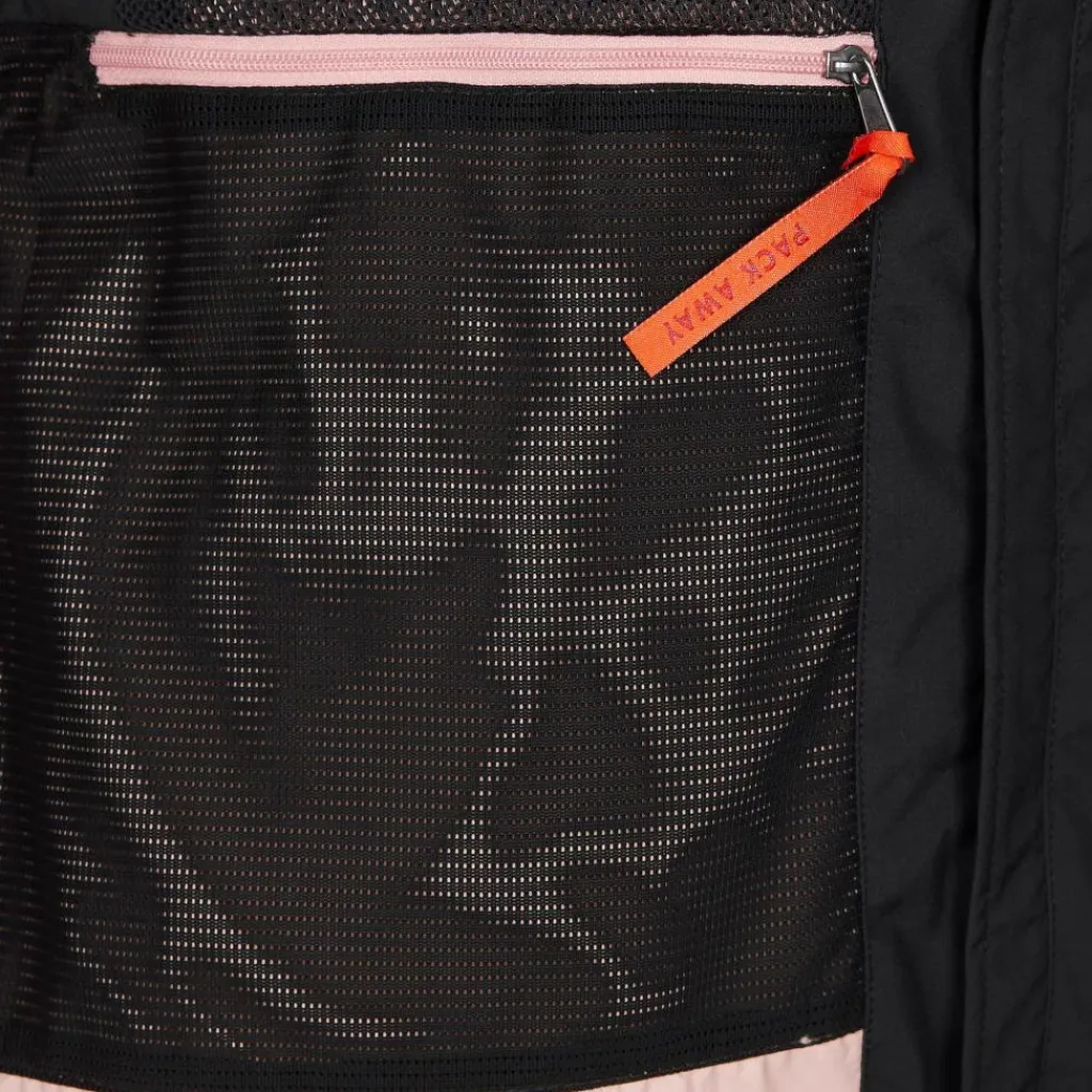 Noch mehr Schutz vor den Elementen bietet dir der Schnürzug im Saum und der Kapuze. So kannst du diese ganz nach deinen Bedürfnissen anpassen. Die Ärmel sind komfortabel vorgeformt und zusätzlich mit an den Bündchen mit Klettverschlüssen ausgestattet. Das Innenfutter der Regenjacke unterteilt sich in feuchtigkeitsleitendes Mesh im Brust- und Kapuzenbereich und Taft in den Ärmeln und dem unteren Rücken. So schlüpfst du auch mit Fleecejacke ganz einfach in deinen Wetterschutz.
