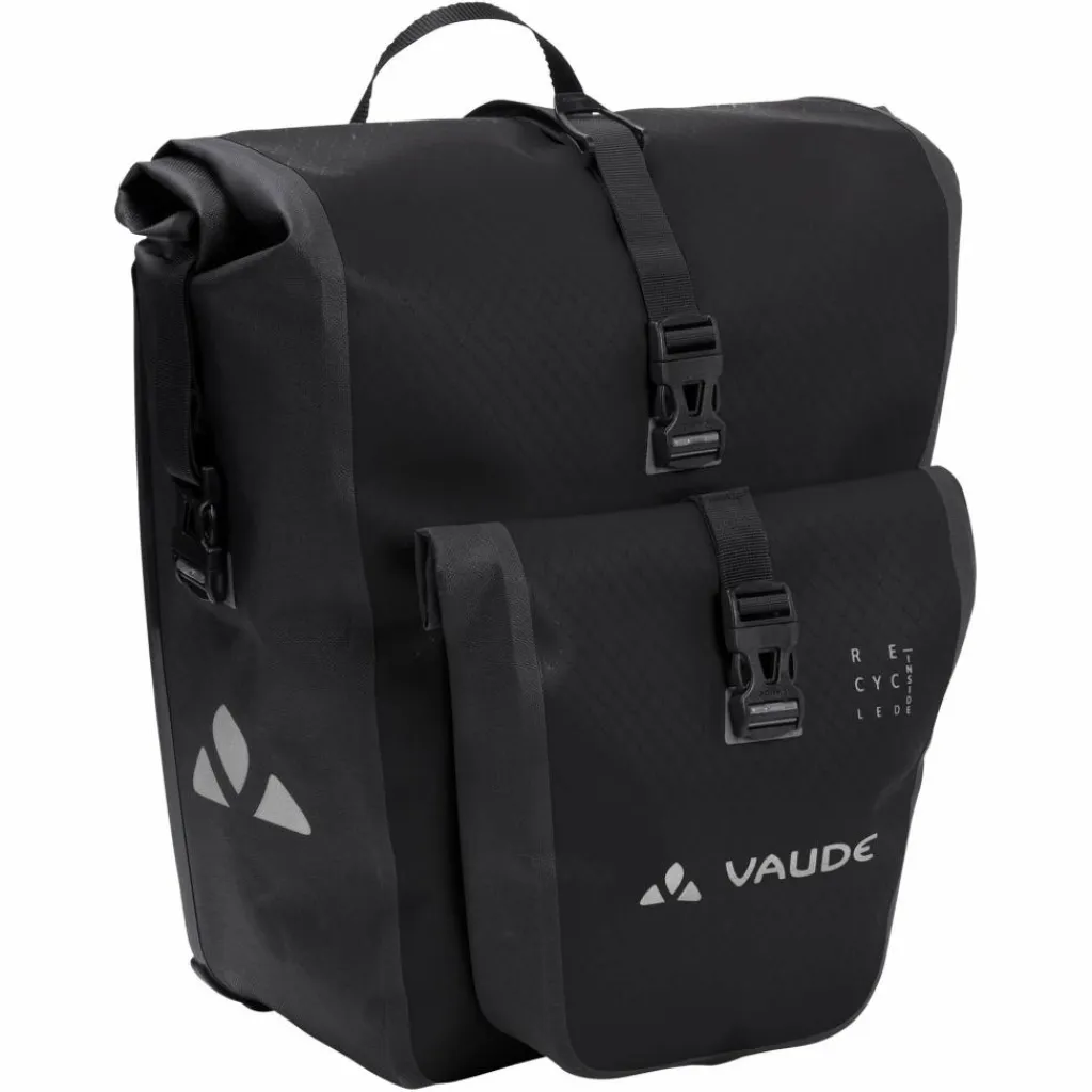 Der Unterschied zur klassischen Vaude Aqua Back Single ist das Zusatz-Außenfach, das aufgeschweißt ist. Dank Rollverschluss hält dieses Fach ebenso dicht wie das Hauptfach. Großes und kleines Fach der Tasche lassen sich mit dem Rollverschluss dicht verschließen. Durch die symmetrische Rückenplatte kannst du die Fahrrad-Gepäcktasche links oder rechts montieren. Eine extra Innentasche schafft Übersicht.