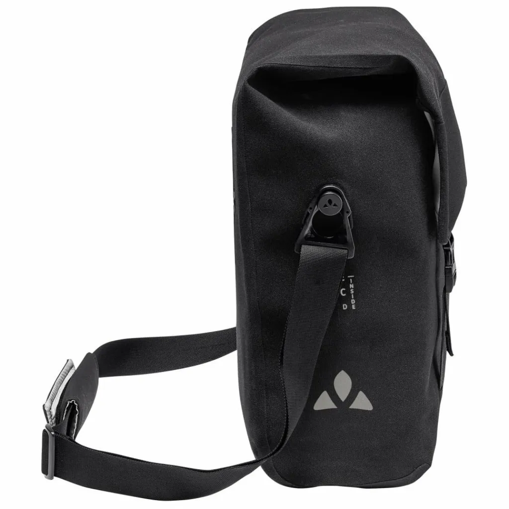 Die große Augsburg IV: Die Tasche mit QMR-Halterung lässt sich abseits vom Fahrrad als Umhängetasche tragen. Das recycelte Material ist sehr robust, wasserdicht und hat einen textilen Charakter.