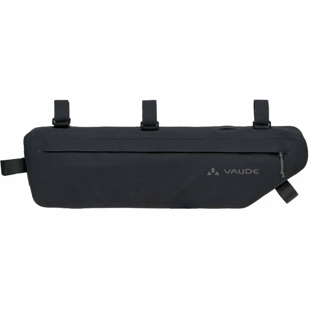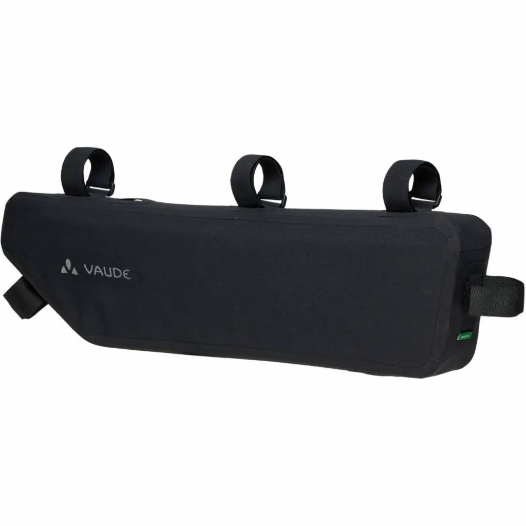 Die Trailframe L ist perfekt fürs Bikepacking geeignet und kann mit der Vaude Trailframe M Tasche kombiniert werden. Die Rahmentasche besteht überwiegend aus recycelten Materialien (64 % Polyamid ist recycelt, 100 % Polyester ist recycelt).