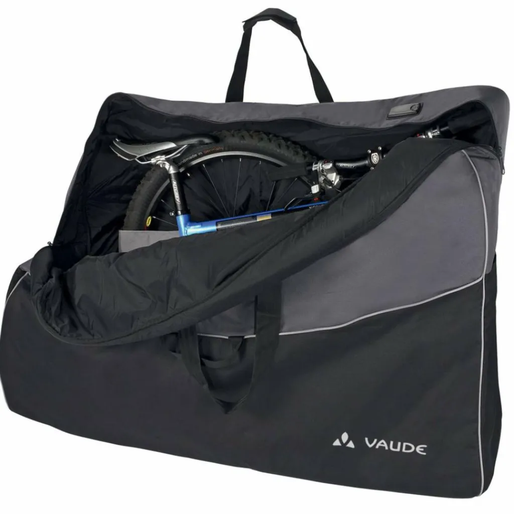 Räder ausbauen, Lenker quer stellen und einpacken! Rahmen und Laufräder sind in der robusten Big Bike Bag Transporttasche in Windeseile sauber verpackt. Über je zwei lange und kurze Träger kannst du die Tasche sicher in der Hand oder über der Schulter tragen.