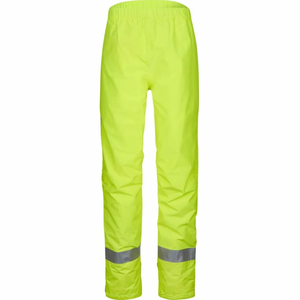 Diese Regenhose macht deine Beine unübersehbar: Die Luminum Rain Pants hat eine starke neongelbe Farbe und große reflektierende Flächen. So wirst du auch an trüben Tagen sehr gut wahrgenommen.