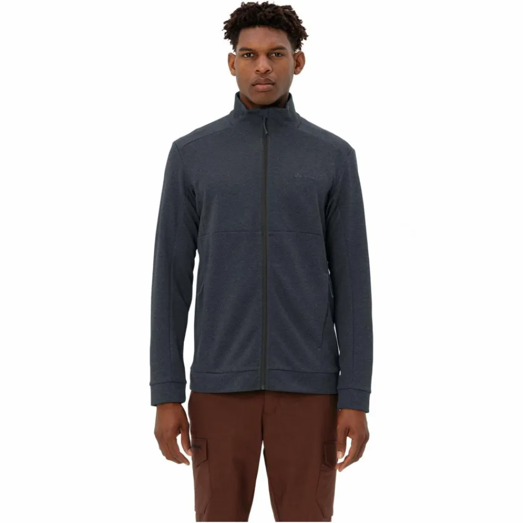 Der hohe Stehkragen verbessert den Wärmerrückhalt an besonders windigen und kühlen Tagen. In den Fronttaschen mit Reißverschluss finden Gegenstände Platz, die man auf Wanderungen gerne griffbereit hat. Das Vaude Green Shape-Label steht für ein umweltfreundliches, funktionelles Produkt aus nachhaltigen Materialien.