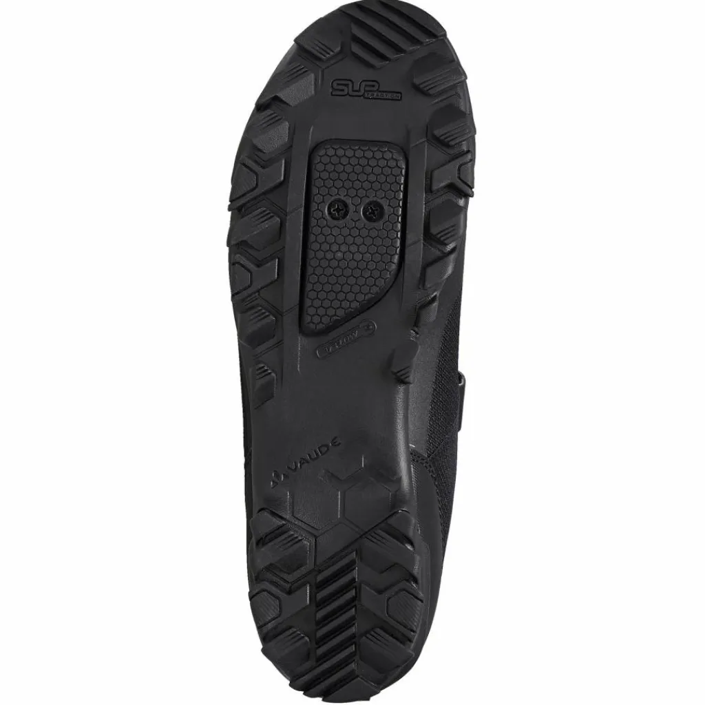 Die Innensohle des Schuhs hat eine Verstärkung in der Pedalzone. Die mittelfeste Außensohle kommt mit einer durchgängigen Nylonverstärkung, die dir hilft, deine Kraft verlustfrei aufs Pedal zu bekommen. Eine profilierte Außensohle zeigt sich bei losem Untergrund griffig. Ideal, wenn du dein Bike mal schiebend bewegen musst.