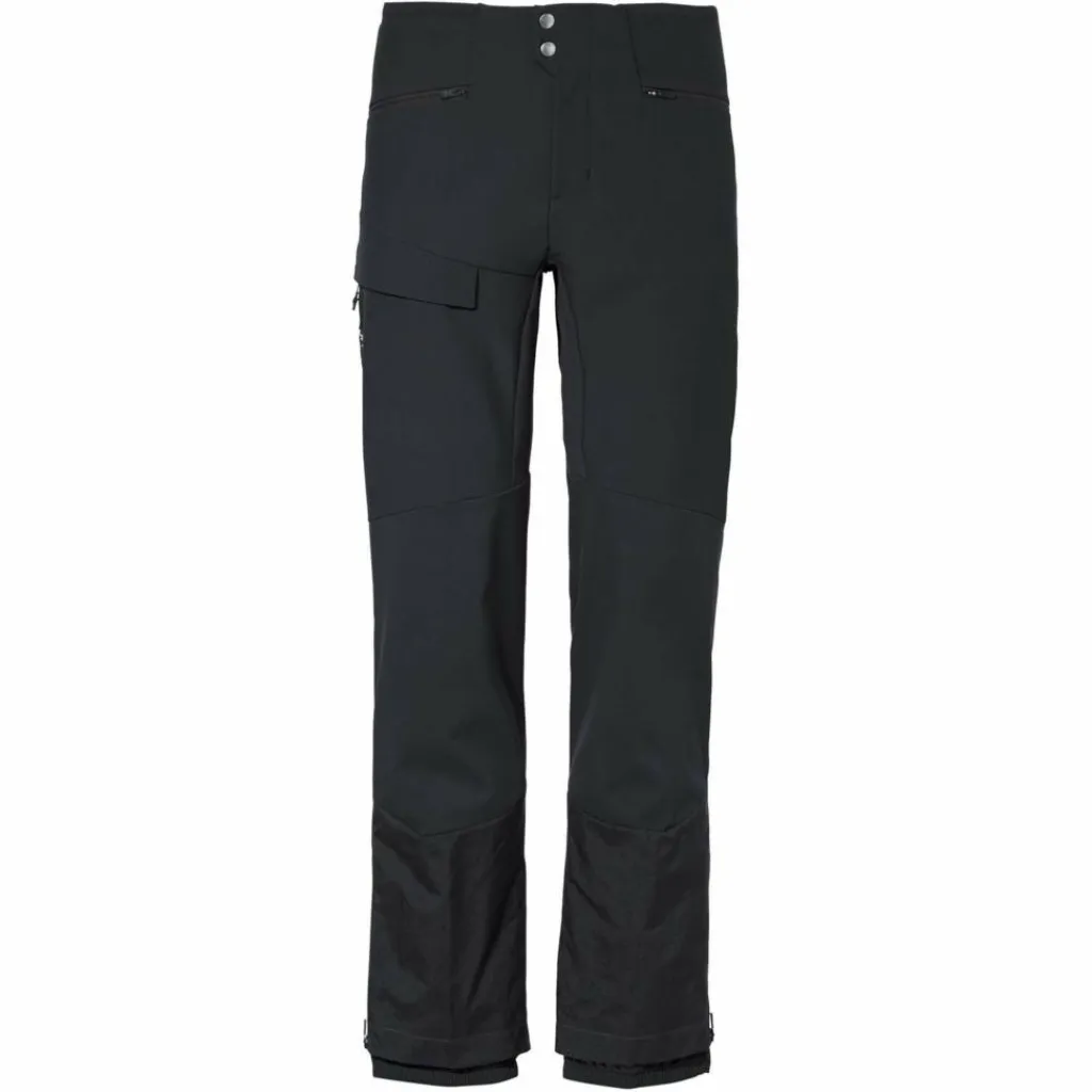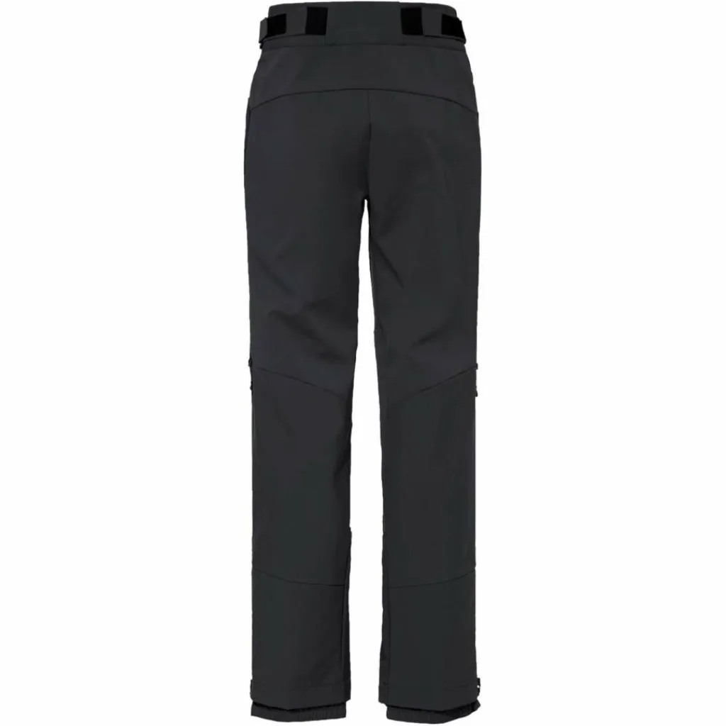 Lange, mit Mesh hinterlegte Ventilationszipper an den Seiten sorgen im Aufstieg für eine effiziente Belüftung, ohne dass Schnee eindringt. Die verstärkten Beinabschlüsse gehen auch bei Kontakt mit Fels, Skikanten oder Steigeisen nicht gleich in die Knie, während eine innenliegende Gamasche Eis und Schnee draußen hält. Zudem ist die Herren Softshellhose voll alpintauglich: Beim Tragen eines Klettergurts stört der flache, mit Klett verstellbare Bund genauso wenig wie die angeschrägten Seitentaschen. Eine zusätzliche Beintasche bietet Platz für LVS, Smartphone, Topo-Karte oder die Mütze.