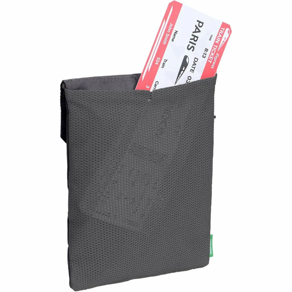Der Brustbeutel besteht fast vollständig aus PET-Polyester. Die orangefarbene Markierung bedeutet, dass der betroffene Teil aus einem anderen Material besteht. Um am Produktlebensende ein sortenreines textiles Recycling zu ermöglichen, kann der Teil mit der Markierung einfach abgenommen werden. Der Neckwallet ist mit einer PFC-freien DWR-Imprägnierung wasser- und schmutzabweisend ausgerüstet.