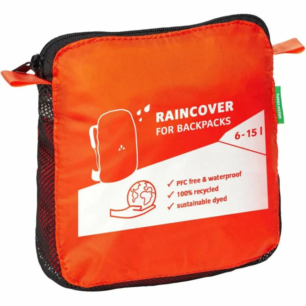 Vaudes Regenhülle für Rucksäcke von 15 bis zu 30 l macht Regengüsse und nasse Fahrradwege harmlos. Durch den Gummizug ist die Regenhülle schnell und sicher am Rucksack. Bei der Überarbeitung der Rucksack-Regenhülle wurde besonderer Wert auf noch mehr Nachhaltigkeit gelegt: Das Material ist nun vollständig recycelt.