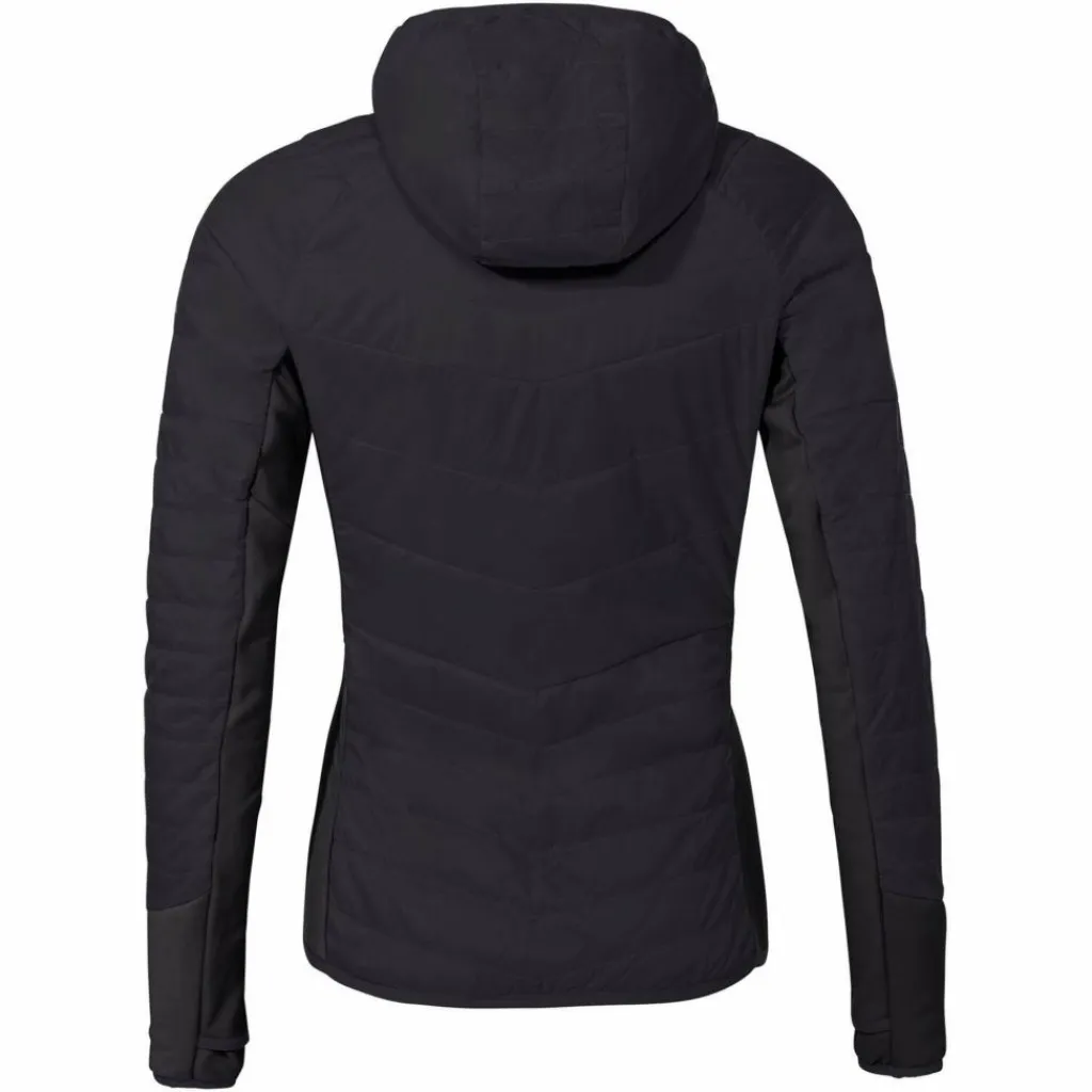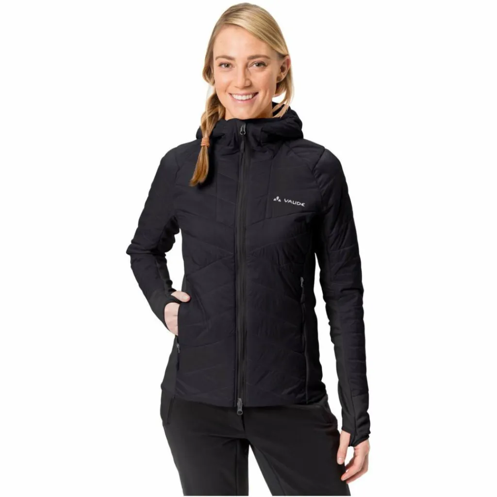 Die Isolationsjacke ist an der angeschnittenen Kapuze sowie dem Saum und den Ärmelabschlüssen mit elastischen Einsätzen versehen. Diese sorgen für guten Halt und einen festen Sitz. Die elastischen Ärmelbündchen sind zusätzlich mit Daumenschlaufen ausgestattet. Da verrutscht nichts und das Hineingleiten in eine wetterfeste Außenjacke ist auch viel leichter. Für wichtige Kleinigkeiten oder einfach zum Aufwärmen der Hände stehen die beiden Reißverschlusstaschen bereit. Mit ihrem geringen Packmaß lässt sie sich zudem leicht ihn deinem Gepäck unterbringen.