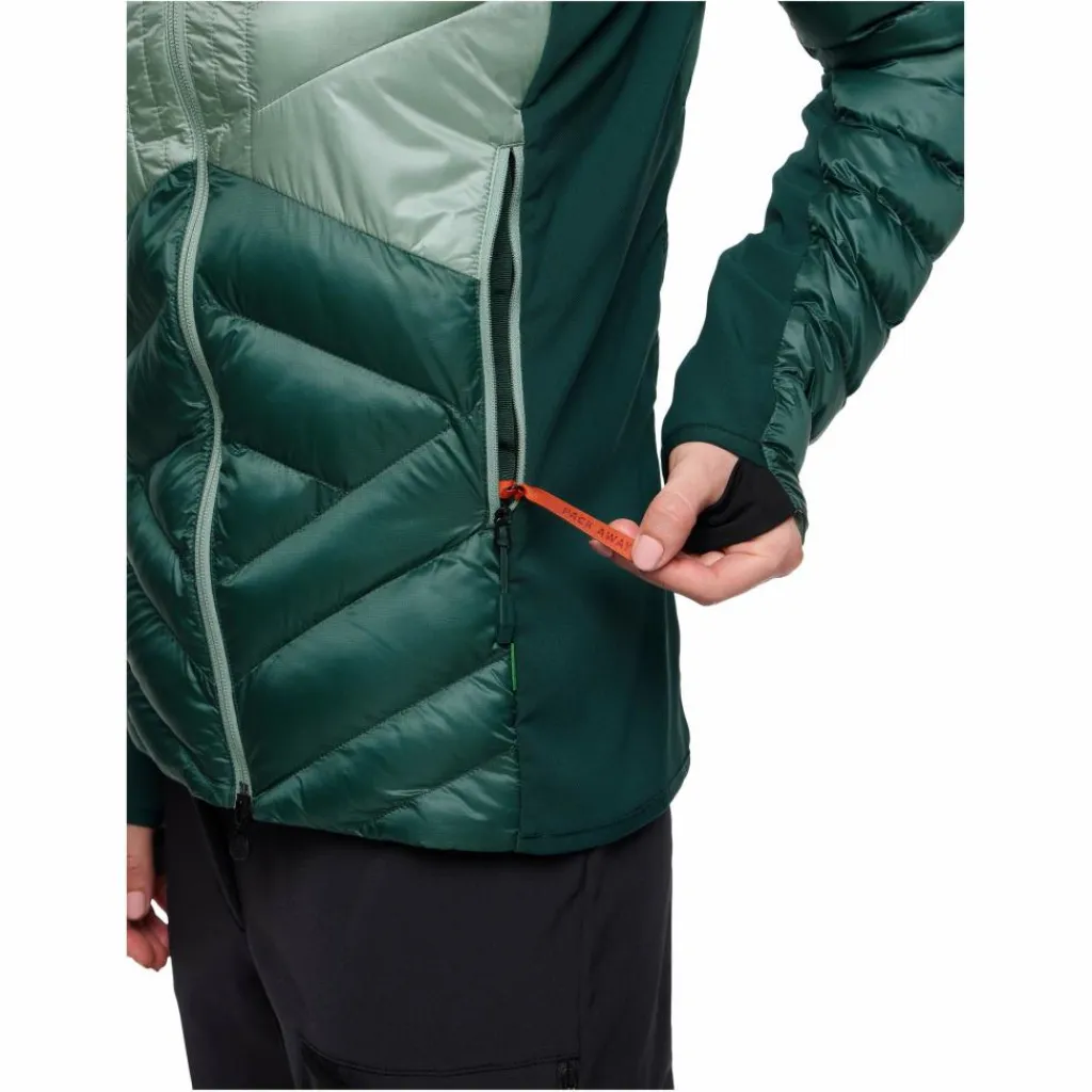 Das wind- und wasserabweisende, hoch atmungsaktive Storm Fleece Softshellmaterial an Ärmeln und an der Seite sorgt zudem für hervorragende Atmungsaktivität und einen extrem hohen Tragekomfort. Der figurnahe Schnitt passt perfekt unter die Hardshell und schützt auch durch den hohen Kragen und die eng anliegende Kapuze zuverlässig vor Auskühlung. Durch den Zweiwege-Reißverschluss kann die Isolationsjacke beim Sichern oder bei Skihochtouren bequem über dem Klettergurt getragen werden. Auch die Taschen sind so angeordnet, dass sie mit angezogenem Klettergurt und Rucksack gut erreichbar sind. Die Damen Isolationsjacke ist klein in der eigenen Tasche verpackbar. Diese sportliche Winterjacke ist nach dem höchsten Umweltstandard bluesign-zertifiziert und den ganzen Winter hindurch vielseitig im Gebirge einsetzbar.