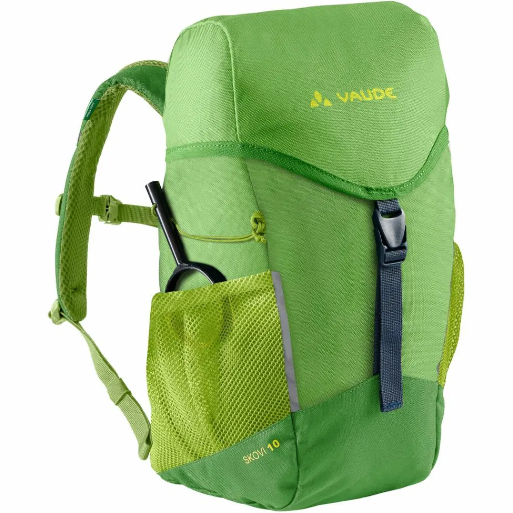 Der weich gepolsterte Kontaktrücken und die ergonomischen Schultergurte verteilen die Last gleichmäßig auf dem Kinderrücken, sodass anhaltender Wanderlust und Entdeckerfreude nichts im Wege stehen. Im geräumigen Hauptfach sind Leckeres für Zwischendurch und die Wechselkleidung sicher verstaut und schnell zur Hand. Für die nötige Organisation sorgt das separate Deckelfach, in dem kleinere Gegenstände wie das Schnitzmesser oder der Kompass übersichtlich untergebracht werden können. Die seitlichen Steckfächer bieten zusätzlichen Stauraum für Trinkflaschen oder leichte Windbreaker. Für die kleinen Wunder am Wegesrand ist der Skovi 10 zusätzlich mit einer Lupe ausgestattet.