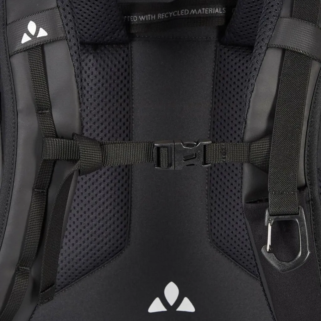 Der Mineo Backpack 30 ist Teil von Vaudes Green Shape Kollektion. Das verwendete Polyestergarn wurde aus gebrauchten PET-Flaschen hergestellt und seine Produktion wurde klimakompensiert.