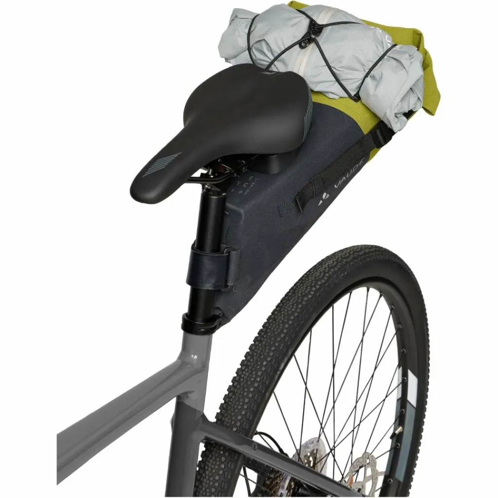 Wasserdichte Fahrrad-Satteltasche mit 6 Liter Volumen fürs Bikepacking. Der Contour Satteladapter macht das Anbringen und Abnehmen der Trailsaddle M einfach und gehört zum Lieferumfang. Die Satteltasche besteht zu einem großen Anteil aus recycelten Materialien (Polyamid zu 64 % recycelt).