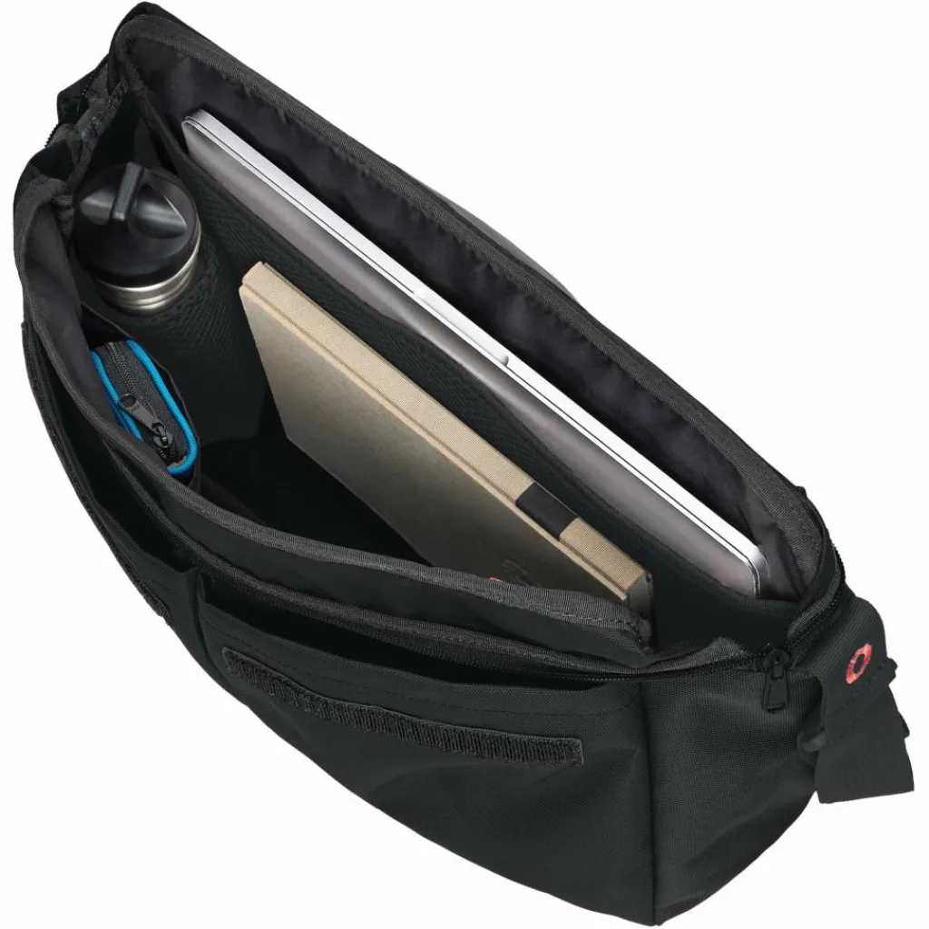 Mit einem Fassungsvermögen von 13 Litern bietet die Coreway Messenger 13 ausreichend Platz für den täglichen Bedarf. Der Deckel lässt sich dank Klettverschluss flexibel in der Höhe anpassen, falls einmal mehr mitgenommen werden muss. Zusätzlich schützt ein Reißverschluss das Hauptfach vor ungewolltem Zugriff. Im Inneren sorgt eine durchdachte Aufteilung mit mehreren Steckfächern, Stifthalter, Schlüsselhalter und einer Flaschenhalterung für Ordnung. Ein separates Fach bietet Platz für Laptop und Tablets mit bis zu 13,3 Zoll. Ein weiteres RV-Fach auf der Rückseite ermöglicht schnellen Zugriff auf Smartphone oder Notizblock. Für hohen Tragekomfort sorgen der gepolsterte Schultergurt und ein zusätzlicher Tragegriff. Der verstellbare, abnehmbare Bauchgurt hält die Tasche beim Radfahren sicher in Position und trägt so zu einer sehr guten Packstabilität bei, kann aber auch als Austecklasche für einen Rollkoffergriff genutzt werden.