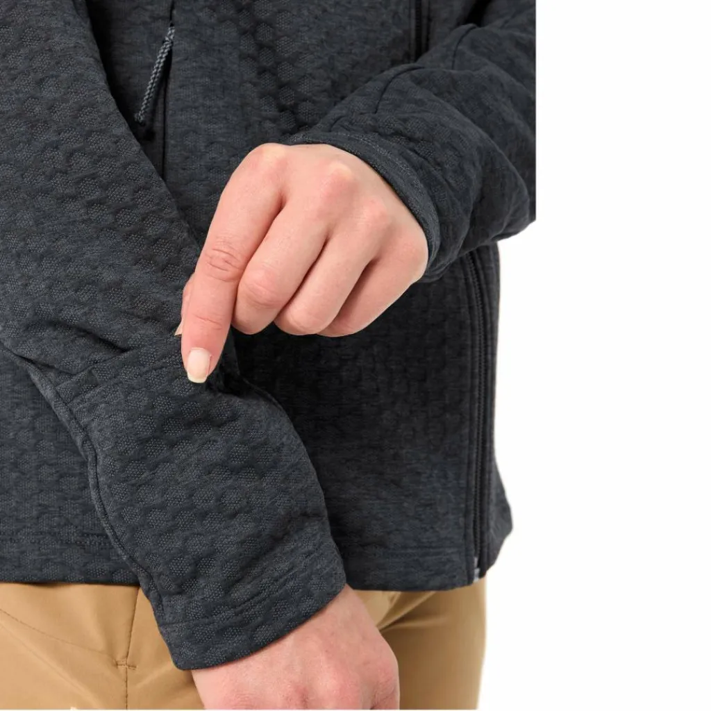 Zudem weist Stretchfleece-Jacke eine hohe Atmungsaktivität auf und transportiert den Schweiß zuverlässig nach außen. Das Material ist angenehm weich, warm und elastisch. Es trocknet schnell und ist pflegeleicht, was vor allem auf mehrtägigen Touren sehr praktisch ist. In den beiden Fronttaschen mit Reißverschlüssen findet sich genug Platz für Smartphone oder Geldbeutel.