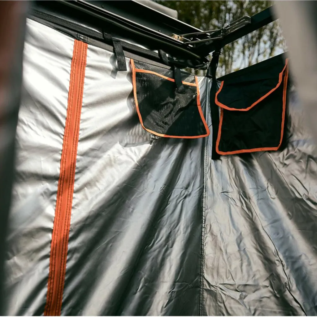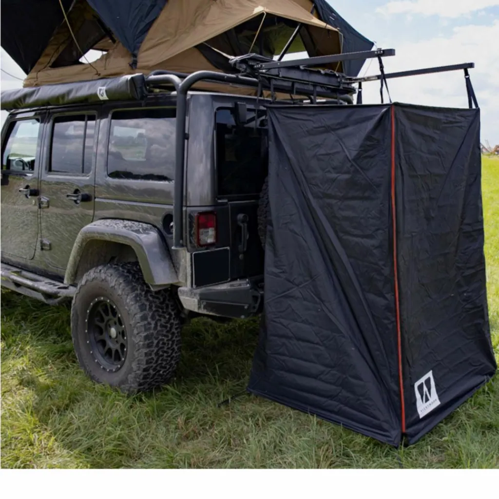 Das Duschzelt lässt sich über ein stufenloses Schienensystem ganz einfach an deinem Dachträger montieren. Durch zwei ausklappbare ist das Duschzelt im Handumdrehen einsatzbereit, der Aufbau dauert mit etwas Erfahrung nicht mal eine Minute! So ist dein Spa-Bereich immer mit von der Partie.