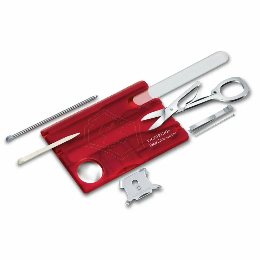 Die multifunktionale Swiss Card überzeugt als Multitool im Mini-Format. Passend für die meisten Geldbörsen und voller Funktionen. Insgesamt finden sich 13 verschiedene Werkzeuge in der handlichen Swiss Card wieder. Anstatt eines kleinen Messers, findet sich eine Glasnagelfeile. Damit wird dieses Modell zum praktischen Begleiter in der Reiseapotheke.