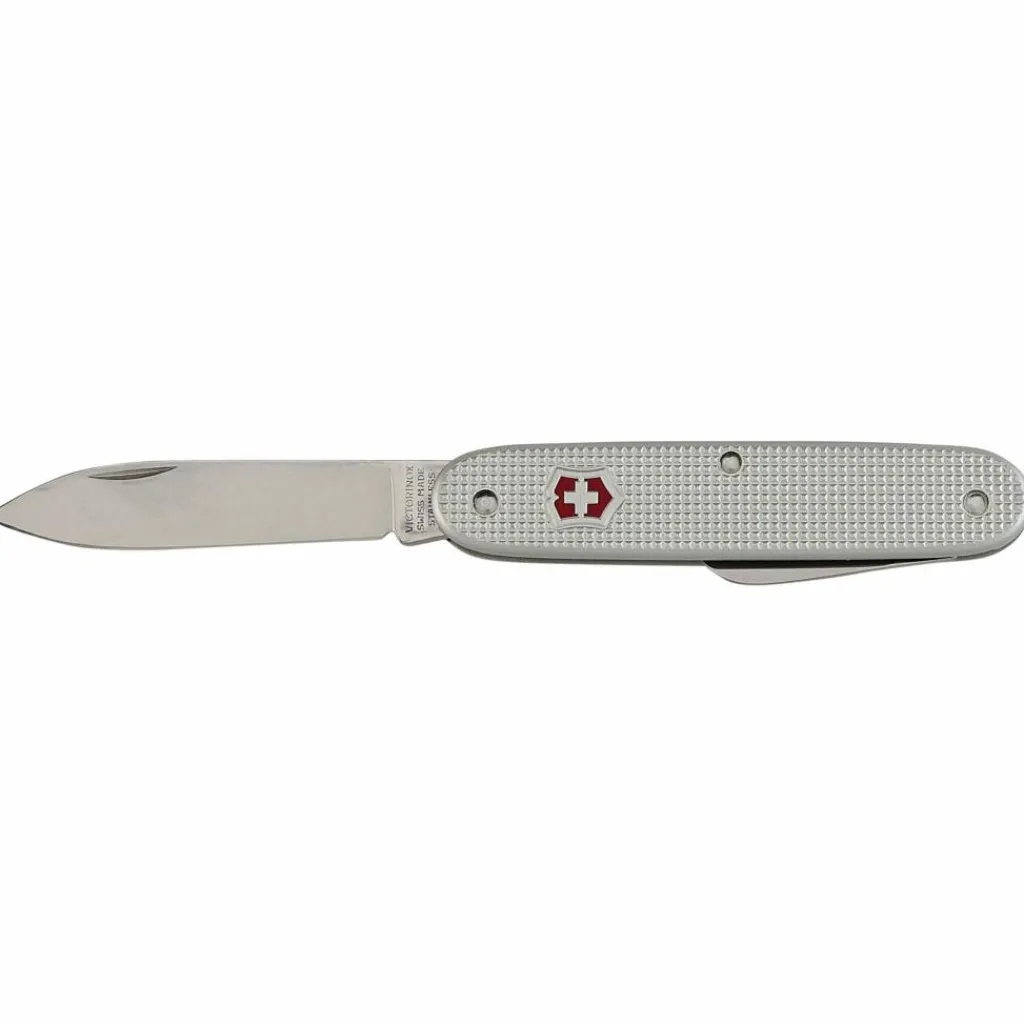 Das Swiss Army 2 besticht durch seine silbernen Aluminiumgriffschalen. Neben der 7 cm langen Hauptklinge besitzt es eine Hakenklinge, mit der sich hervorragend Pakete öffnen lassen.