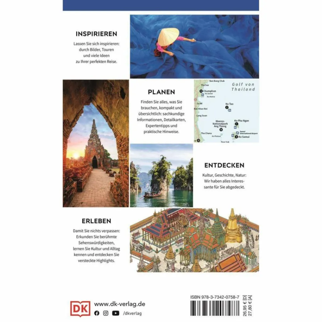 Exotisches Streetfood auf Bangkoks schwimmenden Märkten kosten, prächtige buddhistische Tempelanlagen in Chiang Mai entdecken oder an paradiesischen Stränden relaxen Thailand ist einfach magisch. Mit ausführlichem Expertenwissen, den berühmten 3-D-Aufrisszeichnungen und über 500 stimmungsvollen Fotos erleben Sie die das Land Ihrer Träume hautnah. Dieser Reiseführer Thailand ist der ultimative Begleiter für alle Kulturinteressierten!