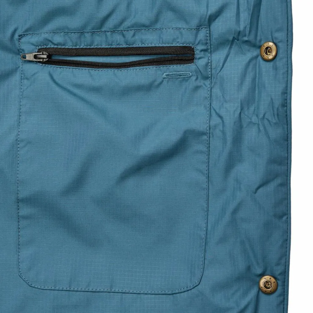 Leicht, komprimierbar und dennoch richtig schön kuschelig. Druckknöpfe ermöglichen das Verwandeln in einen Poncho, der dich beim Kaffee am Morgen wärmt.