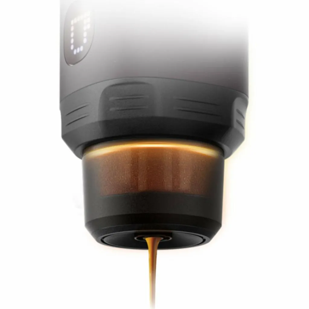 Über das integrierte Display stellst du Brühparameter wie Pre-Infusion oder die Temperatur (88 °C bis 96 °C) ein. Das erlaubt dir die Zubereitung perfekt an die Bohne und den Röstgrad anzupassen. Außerdem musst du kein heißes Wasser mitnehmen, sondern kannst das Wasser aus deiner Trinkflasche nutzen, da das Gerät das Wasser im Gerät auf die gewünschte Temperatur bringt. Der hohe Druck während des Brühvorgangs sorgt für eine intensive Extraktion mit vollen Aromen und einer dichten Crema.