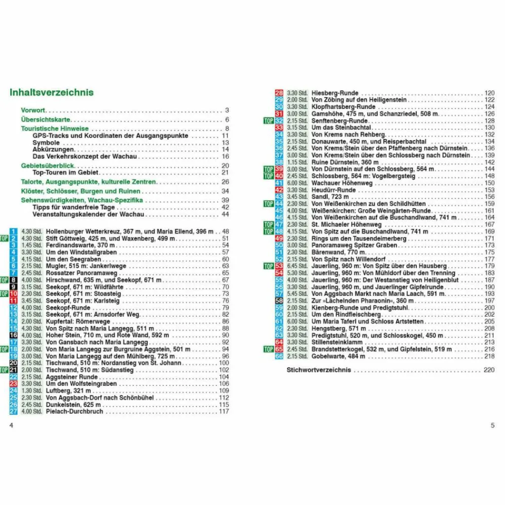 Nicht nur Naturliebhaber, sondern auch kulturinteressierte Wanderer finden in diesem Wanderführer schöne Tourenvorschläge vor: Landschaftlich abwechslungsreiche Wege mit großartigen Aussichten führen entlang an malerischen Städten wie Dürnstein oder Kulturdenkmalen wie Stift Göttweig. Das Gebiet umfasst das Donautal mit Wachau, Nibelungen- und Strudengau, aber auch die Randgebiete wie Hiesberg und Dunkelsteinerwald sowie die von Norden aus dem Waldviertel einmündenden Seitenäste des Spitzer Grabens, das untere Krems- und Kamptal.