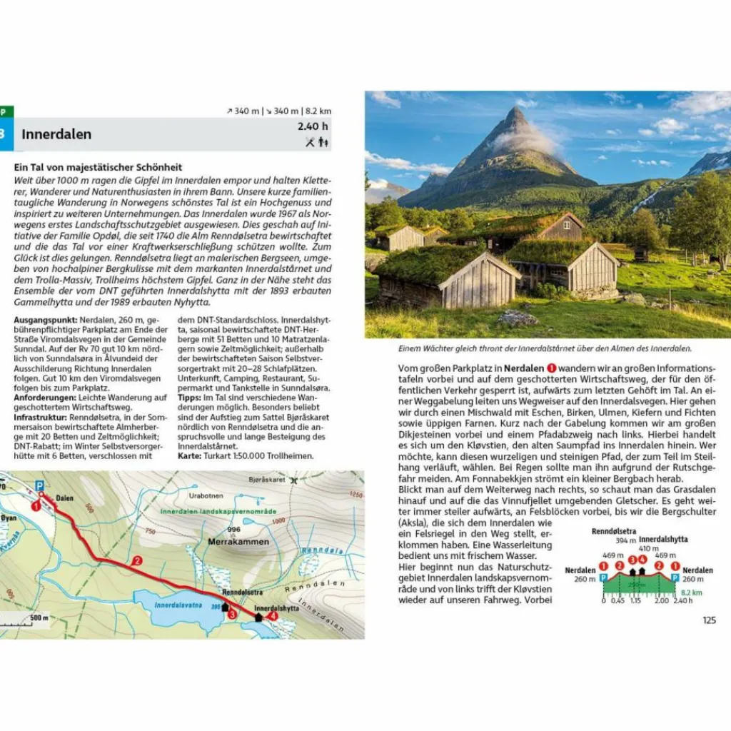 Bei der Auswahl finden sich Touren für jeden Geschmack und jede Kondition: Kurze familientaugliche Wanderungen gibt es ebenso wie in luftige Höhen entführende Gipfelbesteigungen und Gratwanderungen. Neben Halbtages- und Tagestouren werden einige Mehrtagestouren vorgestellt, auf denen man noch tiefer in die faszinierenden Landschaft Norwegens eintauchen kann. Im Land der Superlative entdeckt man an jedem Fjord, in jedem neuen Tal, das man besucht, ein weiteres Kleinod: Sei es der Hornelen als höchste Klippe Europas, der Ekkertinden als »Preikestolen« des Sunndalen, die Vogelinsel Runde oder die Wasserfälle von Åmotan – ein Spektrum an Naturschönheiten, das kaum Wünsche offen lässt!