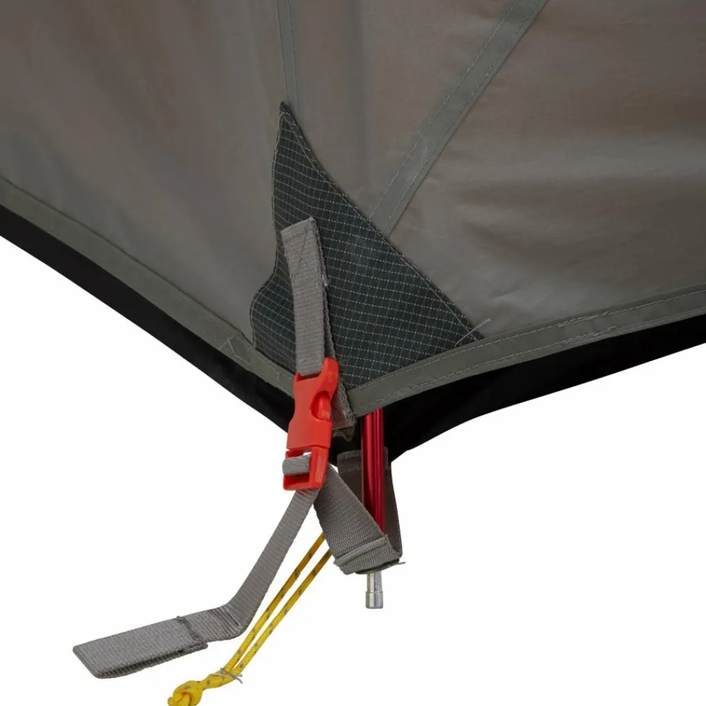 Du kannst das Kuppelzelt einfach und zügig aufstellen. Dabei wird das Innenzelt zuerst aufgebaut und mit Clips am Gestänge befestigt. Jetzt nur noch das Außenzelt überwerfen und mit den Blitzverschlüssen am Innenzelt befestigen. Für eine einfache Zuordnung ist ein Blitzverschluss farbig markiert. Fertig ist dein Zuhause für die nächste Nacht.