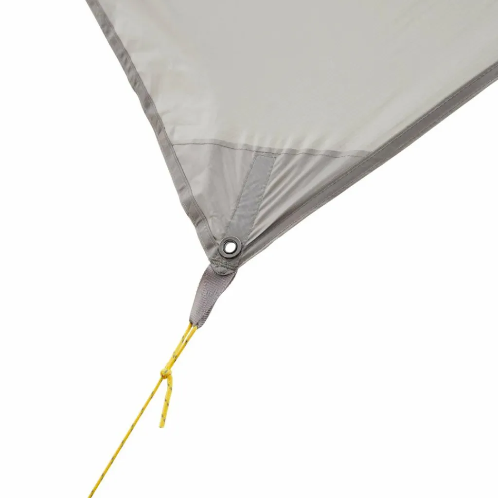 Sehr großes Tarp mit 17,4 m² Fläche, unter dem es sich geschützt vor Sonne und Regen mit der ganzen Familie sitzen lässt. 16 Abspannpunkte ermöglichen eine Vielzahl an Aufstellvarianten.