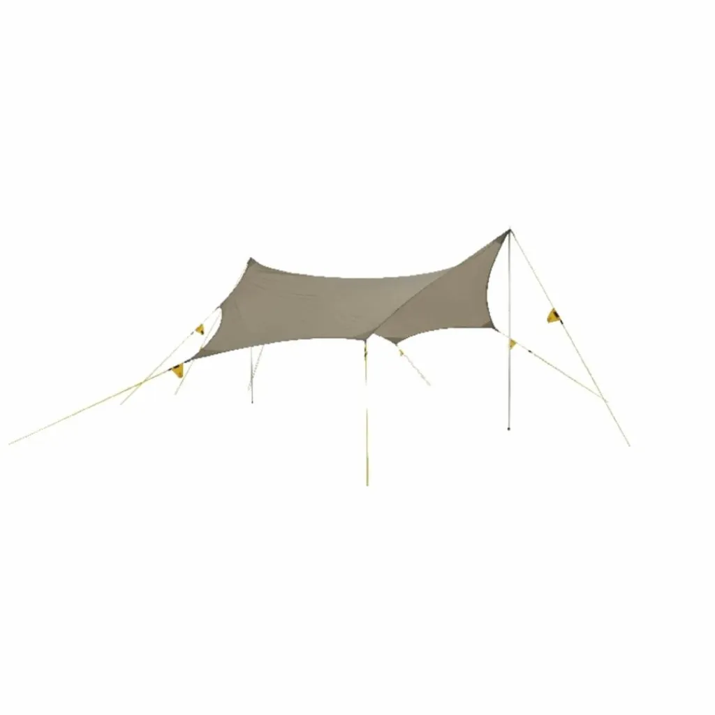Leichtes Tarp, das sich durch seinen speziellen Schnitt kräftig abspannen lässt. Die universell einsetzbare Größe eignet sich z. B. als Zeltvordach, Unterstand oder einfachen Schlafplatz.
