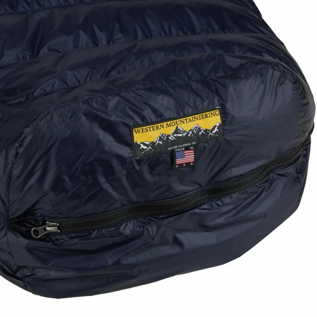 Western Mountaineerings Extremelite-Serie zeichnet sich durch ultraleichte Materialien aus. Das Außenmaterial aus 12D Ripstop Nylon ist daunendicht. Innen kommt 15D Nylon Taffeta zum Einsatz. Es ist herrlich weich und fühlt sich auch direkt auf der Haut angenehm an. Durch die schwarze Farbe heizt es sich schnell auf und trocknet dadurch beim Auslüften schneller.