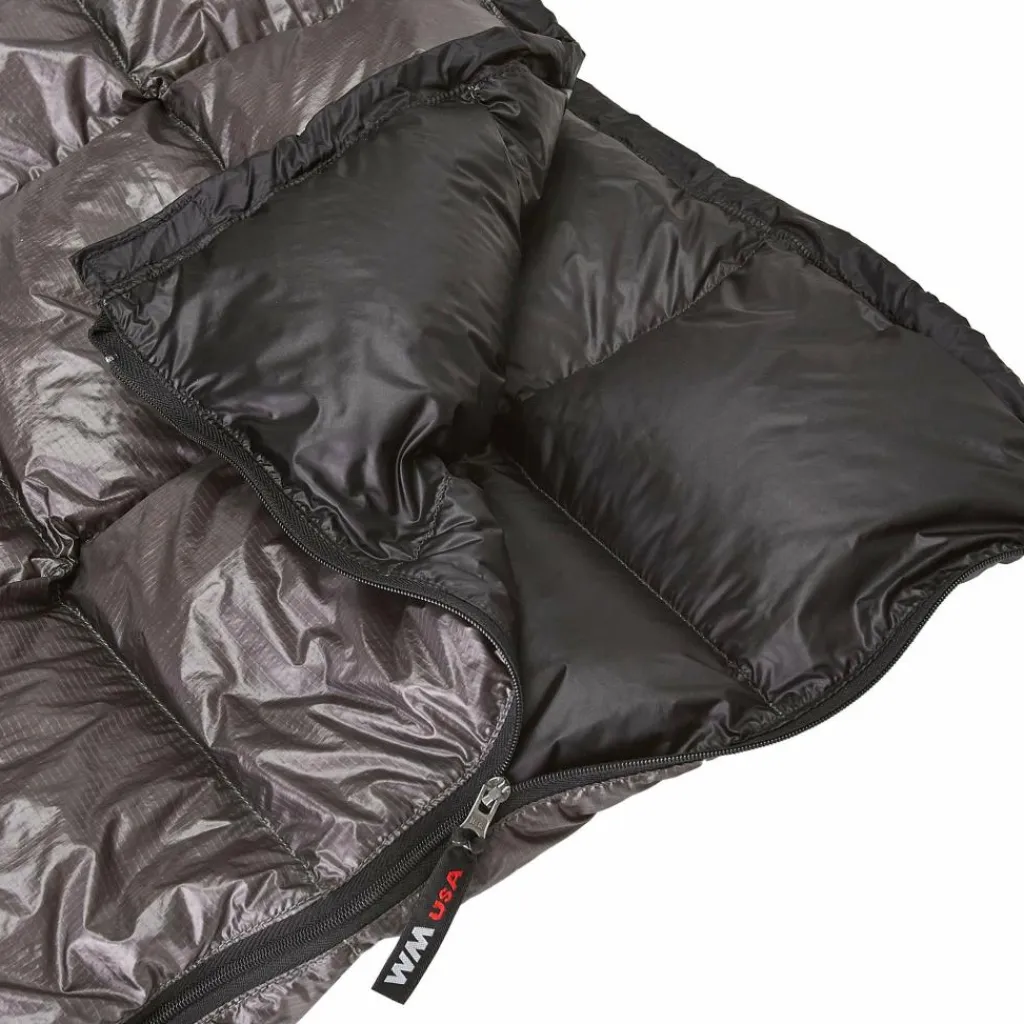 Das Modell aus Western Mountaineerings ExtremeLite Serie wird aus deinem Gepäck kaum wegzudenken sein. Der Schlafsack besitzt keine Kapuze und wird oben und unten mit einem Schnürzug verschlossen. Mit deutlich unter 500 g und minimalem Packmaß ist er für leichtes und kleines Gepäck optimiert. Das 10D Nylon-Material ist durchsteppt und teilt die Federn in feste Kammern ein.