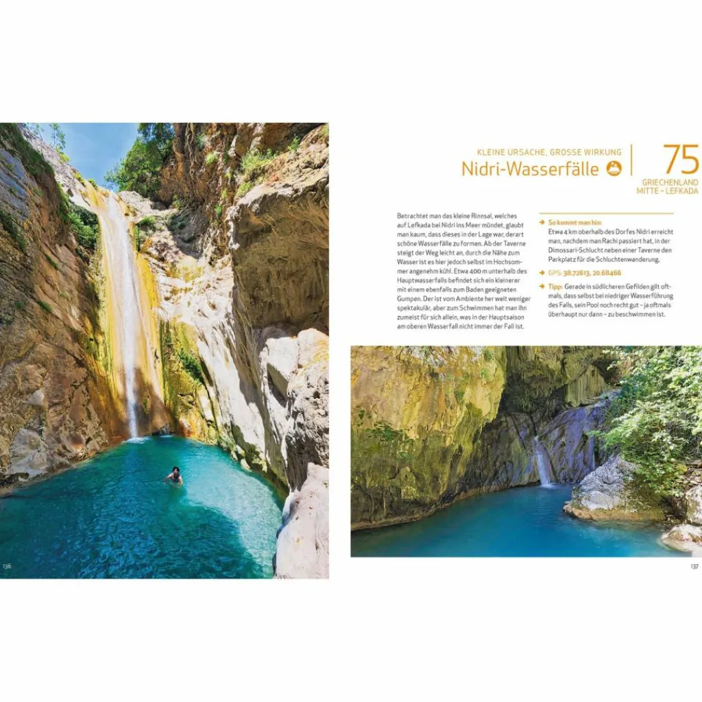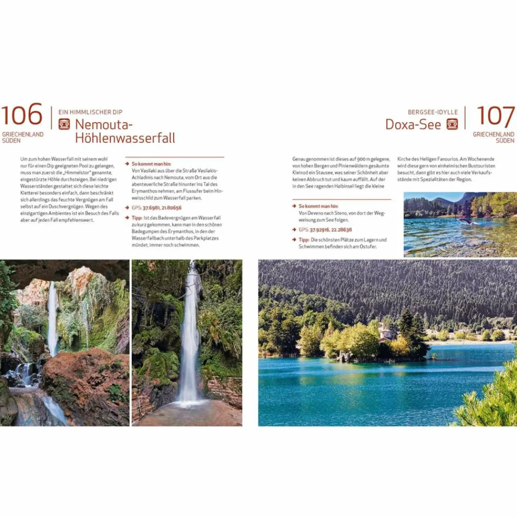 Ob an den für Griechenland so typischen, malerischen historischen Bogenbrücken, an faunischen Quelltöpfen, oder in spektakulären Schluchten, die Vielfalt der hier beschriebenen Spots reicht von familienfreundlich bis sportlich. Reich bebildert und mit GPS-Daten versehen, vermitteln die Spotbeschreibungen nicht nur einen emotionalen Vorgeschmack auf einzigartige Dips und Swims sondern auch klare Infos, wie und wo man diese am besten vorfindet. Außerdem machen Querverweise, Sicherheits- und Ausrüstungs-Tipps Mut auf eigene schwimmerische „Heurekas“…
