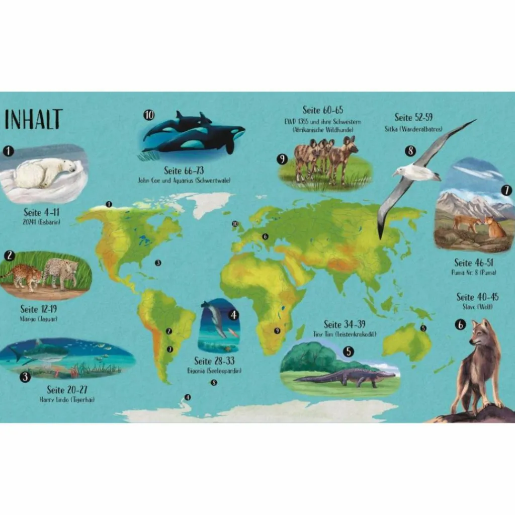 Dieses besondere Kindersachbuch erzählt die Abenteuer von 10 echten Tieren. Mit John Coe, dem Orca, durchqueren die Kinder die Irische See, fiebern in Afrika mit Wildhündin EWD 1355 und ihren Schwestern, die vor Wilderern flüchten müssen, und begleiten Wolf Slavc auf seiner langen Wanderung von Slowenien nach Italien.
